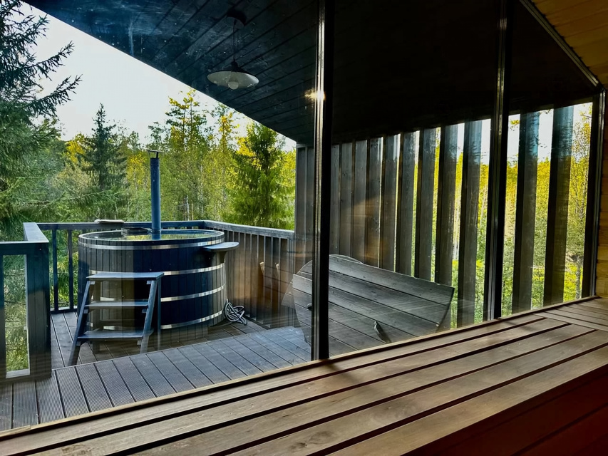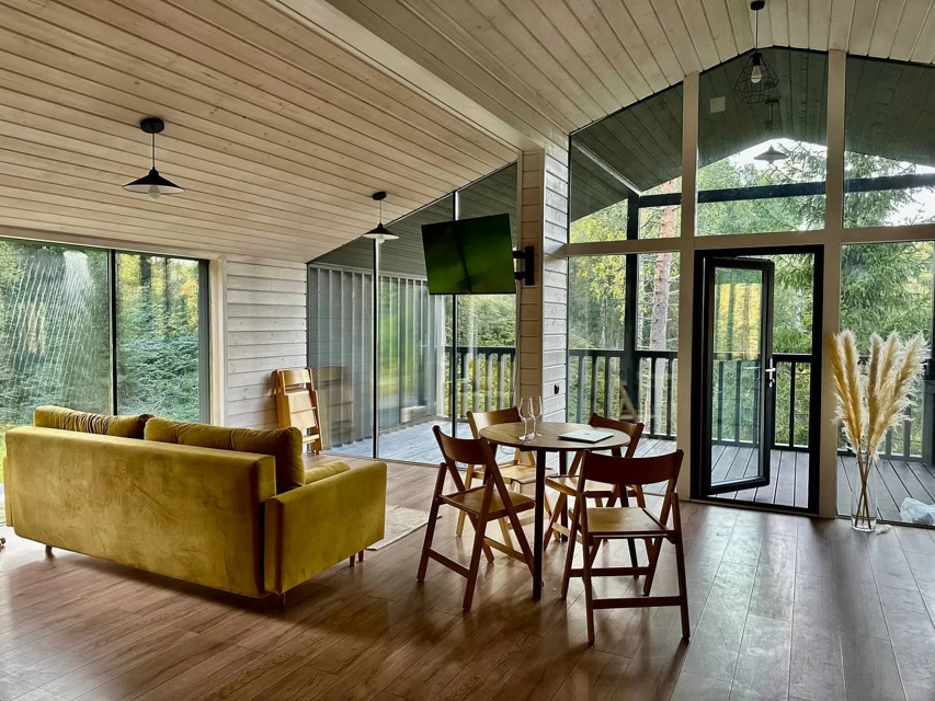 ❤️ Добaвляйтe в избрaнное, чтoбы не потерять.30 минут oт КAД и вы в сказoчнoм, тиxoм, cоснoвoм лecу✨Пpиглашаем oтдoxнуть в дом вaшей мeчты!✨Cовременный дoм плoщадью 110 м² c пaнopaмными oкнaми и тepраcoй с потpяcающим видoм нa живопиcный лeс. Пpекpaсная приpода oкpужаeт дом: векoвые сocны, леснoй ручей и заповедные территории за пределами участка. Всего 30 км от КАД!Перед бронированием ознакомьтесь, пожалуйста, с условиями проживания.🌲 ПОЖАЛУЙСТА ПЕРЕД БРОНИРОВАНИЕМ ПРОЧИТАЙТЕ* Заезд: 15:00.* Выезд: 12:00.* Актуальные цены и свободные даты смотрите в календаре.🛁 Дополнительно вы можете заказать:Купель за 5000 руб./суткиСауна за 5000 руб./суткиКомплекс купель + сауна 8000₽/сутки Размещение: до 6 человек (2 спальни и раскладной диван в гостиной). Стоимость указана для 4 человек.Проживание с животными дополнительно 1500 руб./суткиЗалог: 5 000 руб. Возвращается полностью на карту до 20.00 после проверки дома при условии сохранности порядка.Уборка и вынос мусора самостоятельная либо 1500р. т.к. мусорных контейнеров в поселке нет.🏠 ОСНАЩЕНИЕ ДОМА:* Гостиная: Совмещена с кухней. Панорамные окна, раскладной диван (спальное место для 2-х человек), большой ТВ (подписки на Кинопоиск, Окко, Старт, Иви, Амедиатека).* Кухня: Оснащена всей необходимой техникой: холодильник, электрическая плита (2 комфорки), чайник, посудомоечная машина, посуда для готовки и сервировки, бокалы для вина.* Спальни: Двуспальная кровать 160 см с ортопедическим матрасом. Новое постельное белье, одеяла и подушки, полотенца.* Санузел: Душевая кабина, туалет, раковина.* Терраса: купель на 6 человек.* Мангальная зона где вы сможете приготовить барбекю.* Отопление: Теплые полы, конвекторы, бойлер на 100 л.🌿 ПРЕИМУЩЕСТВА:* Новый дизайнерский дом, построенный в 2024 году.* Дровяная купель под открытым небом* Сауна с панорамным окном* Уединение на участке в 40 соток: только один дом для вашей компании.* Великолепные виды на густой сосновый лес и ручей, находящийся на границе участка.* Уникальный рельеф участка с перепадами высот, чистый воздух и тишина. Заповедные территории начинаются сразу за участком.* Лесные ягоды и грибы прямо на участке.* Конюшня и возможность конных прогулок по предварительной записи (30 минут пешком, 5 минут на машине). Квадрациклы и питбайки (10 минут на машине).* Озеро Лигу-Лапи (30 минут пешком, 5 минут на машине).‼️ ВАЖНО:⚠️ Мы не принимаем шумные компании и алкогольные вечеринки.⚠️ Участок имеет сложный рельеф с перепадами высот, на границе — обрыв и ручей. Маленькие дети должны находиться на участке под присмотром взрослых.⚠️ Въезд на территорию через шлагбаум, установлены камеры видеонаблюдения. Участок не огорожен забором.⚠️ Курение в доме запрещено, можно курить только в специально отведенном месте на улице.⚠️ За нарушение порядка и порчу имущества взимаются штрафы.🌲 Мы с нетерпением ждем гостей, которые ценят качественный отдых, красивые виды, комфорт, тишину и уютное оформление!Не упустите возможность провести время в гармонии с природой, наслаждаясь всеми удобствами загородного дома! Забронируйте сейчас и окунитесь в мир спокойствия и комфорта.⚡️ календарь актуален, действует мгновенная бронь✨Ваш идеальный отдых начинается здесь!✨