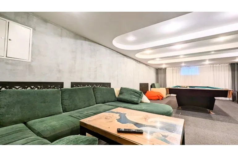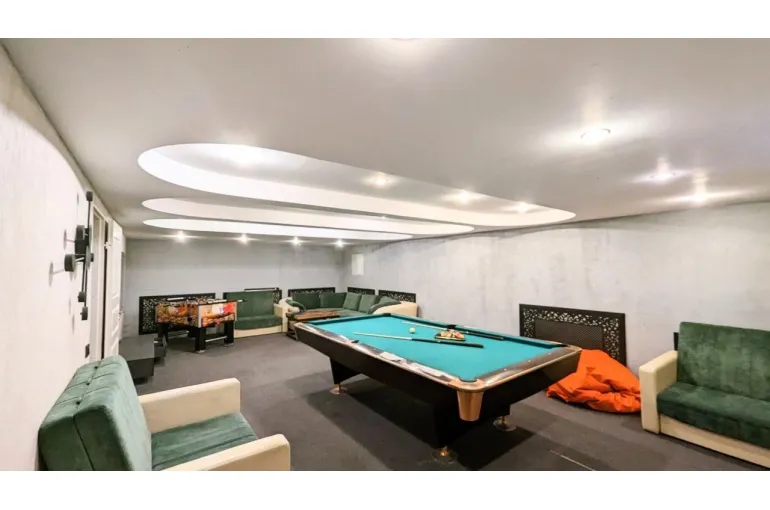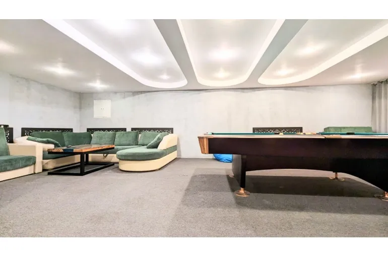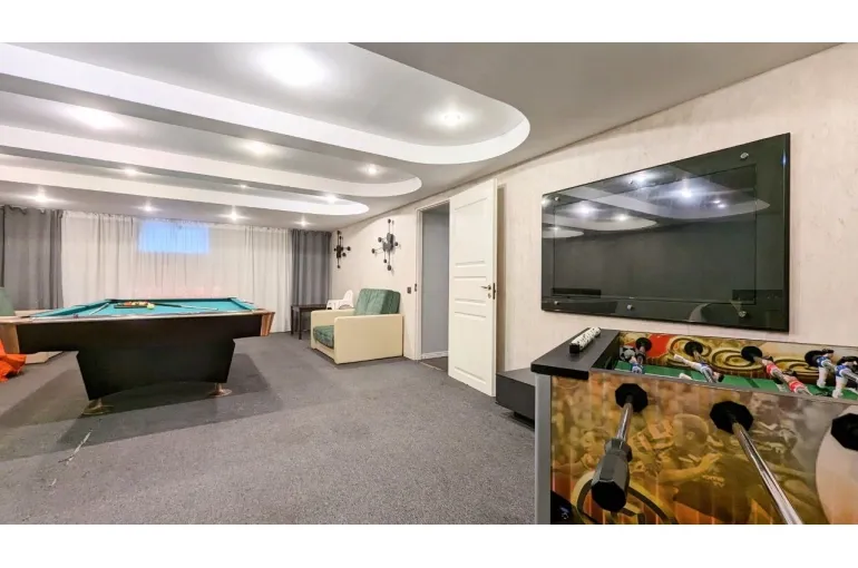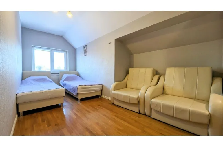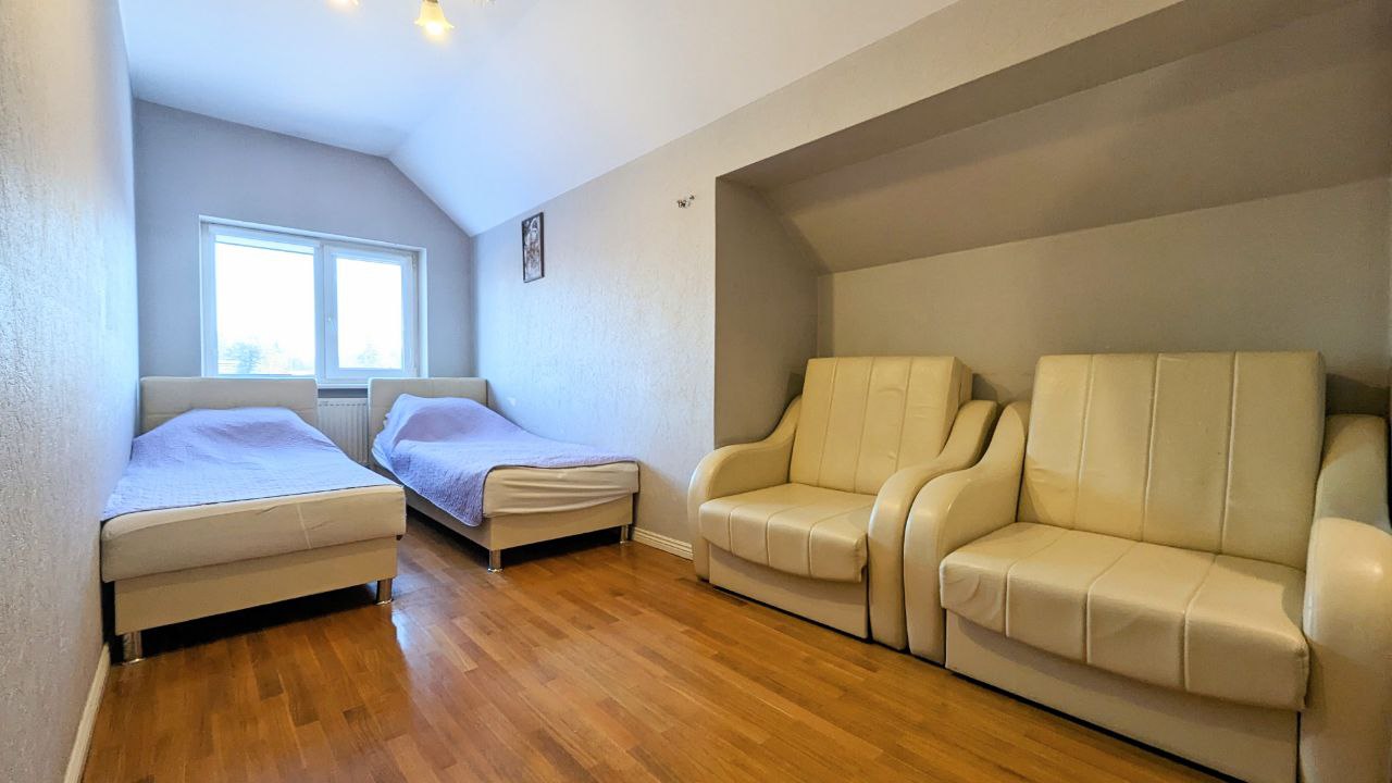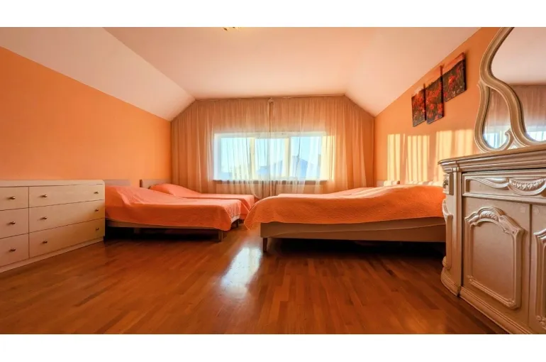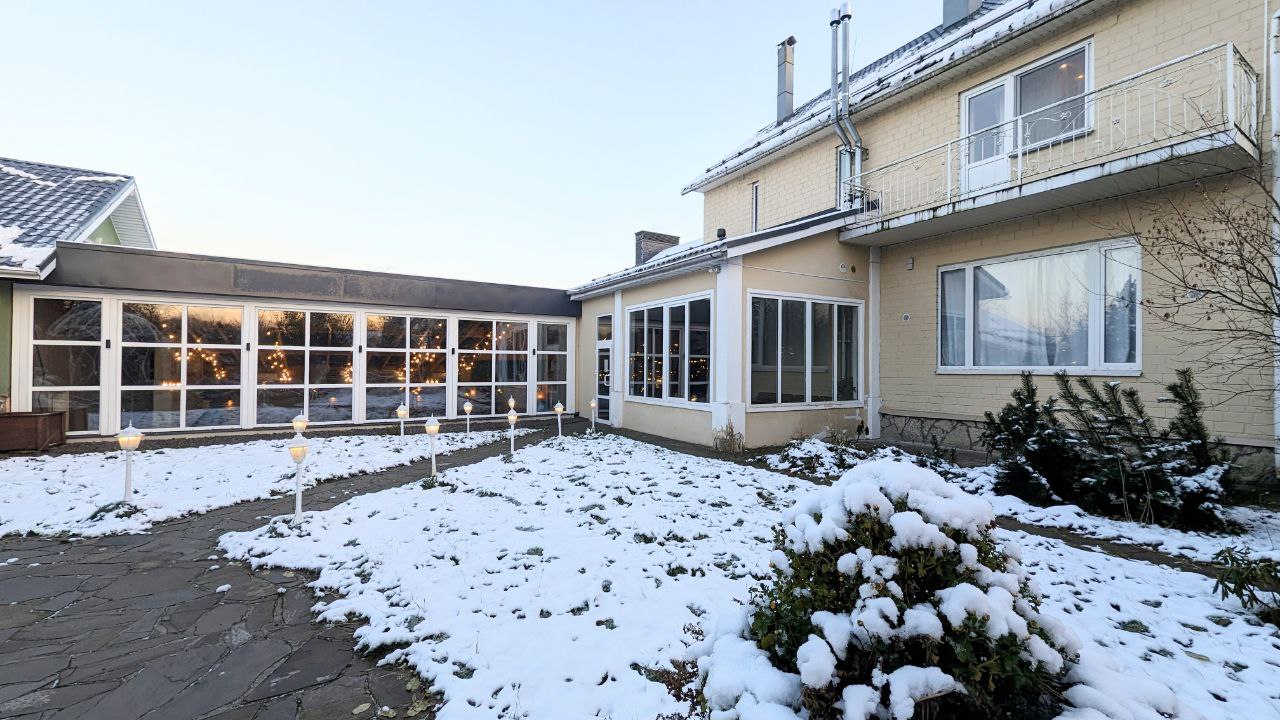 На территории расположено 2 коттеджа: большой дом сдается отдельно и к нему предлагается малый дом - для больших компаний. В большой коттедже: большой и светлый банкетный зал с настоящим камином, комната отдыха с мягкой мебелью и бильярдом, есть также спутниковое тв с караоке, сауна в доме, терраса у дома, своя парковка. Интерьер выполнен в светлых тонах в классическом стиле, на закрытой территории есть великолепная кованная беседка для выездных регистраций и фотосессии, дорожка с фонарями, которая красиво украшается, а также белая кованная скамья, новое ЛОФТ пространство. Большой коттедж 350 м2 с банкетным залом имеет 6 спален (до 30 спальных мест) и гостевой - 7 спален (14 спальных мест, все односпальные кровати, сдвигаются). Общее количество спальных и посадочных мест в зале - 40. Коттедж в Юкках для праздников - прекрасный вариант для свадьбы, Дня рождения, корпоратива, тренинга, празднования Нового года и просто хорошее место для отдыха с самыми близкими. Особенно хочется выделить теплую атмосферу и большой опыт организации мероприятий у хозяев. Рядом есть горнолыжный курорт Юкки-Парк. Можно заказать банкет.