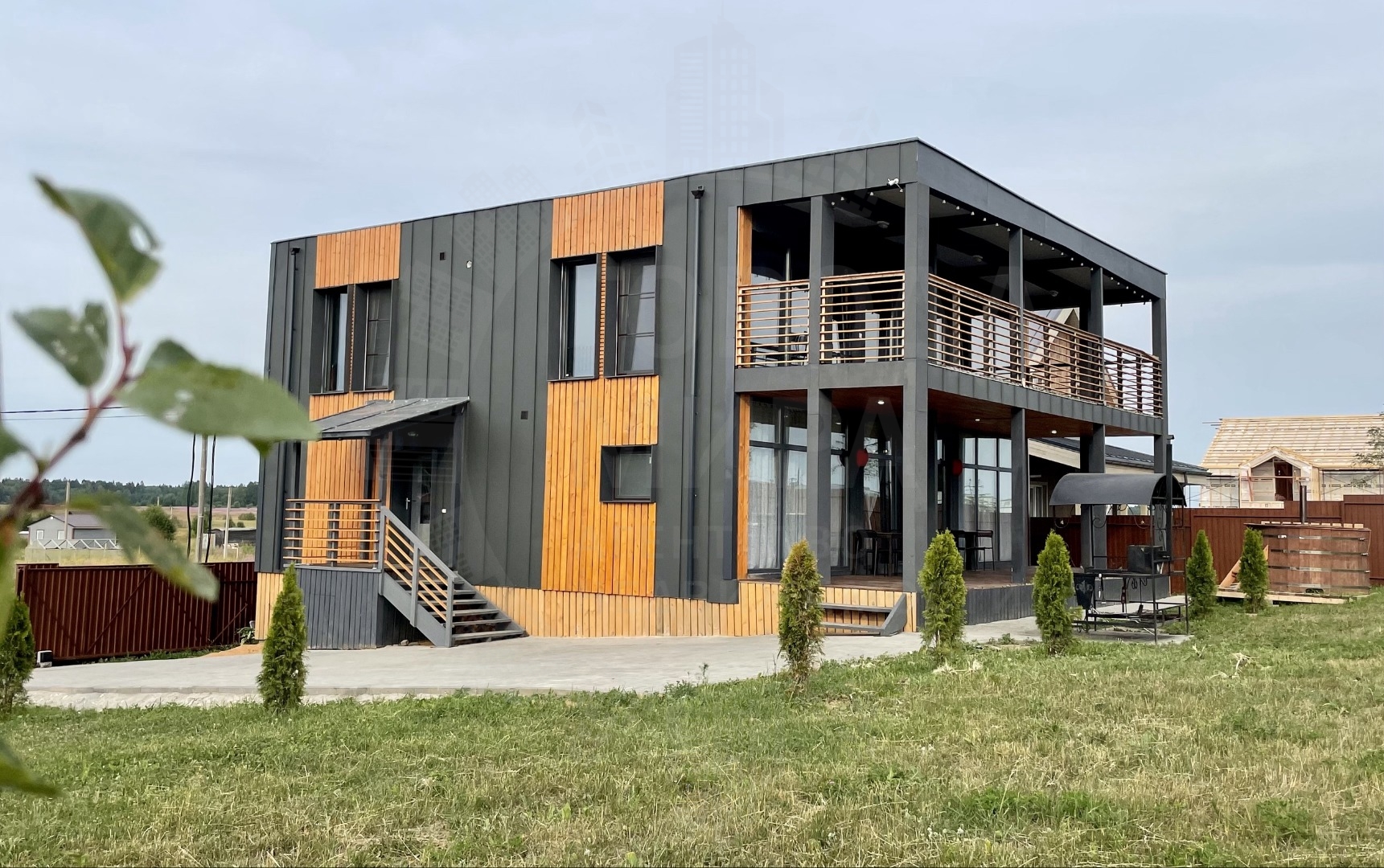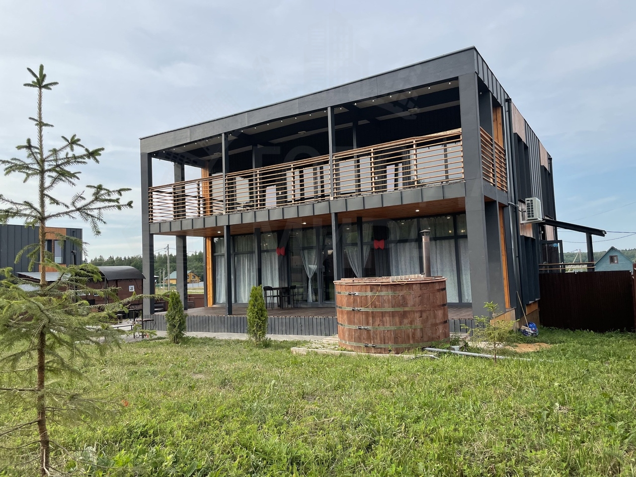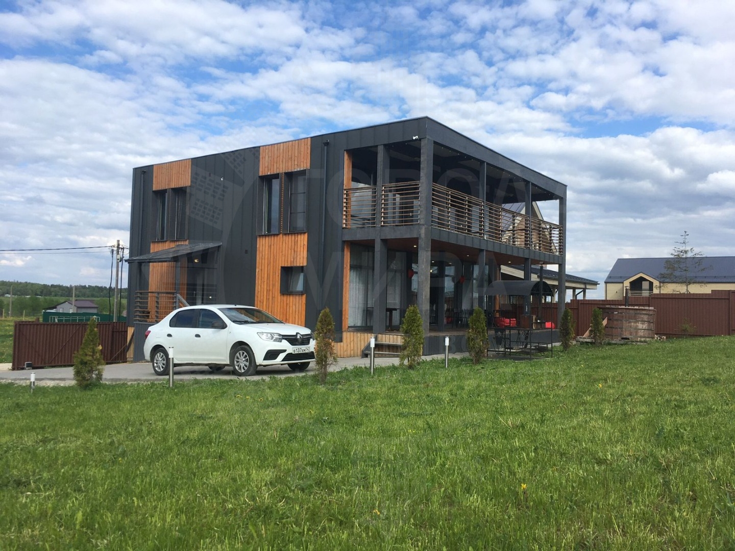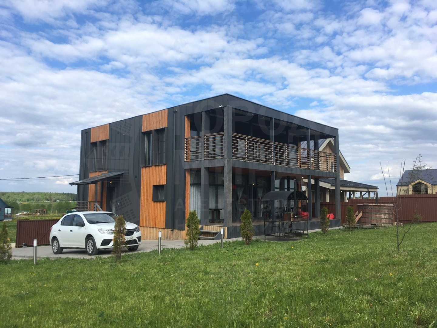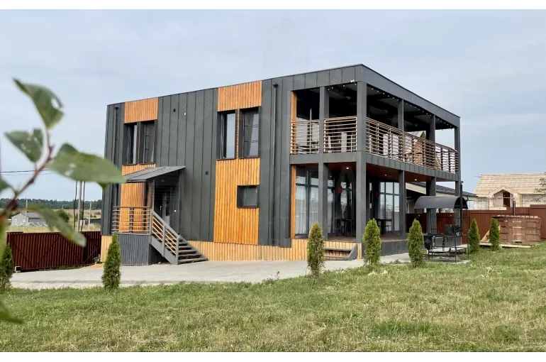 Огромный балкон и терраса, большая бесплатная парковка. 25км от КАД по Гостилицкому шоссе. Удобная транспортная доступность - второй дом от въезда в коттеджный поселок Лопухинская мыза.