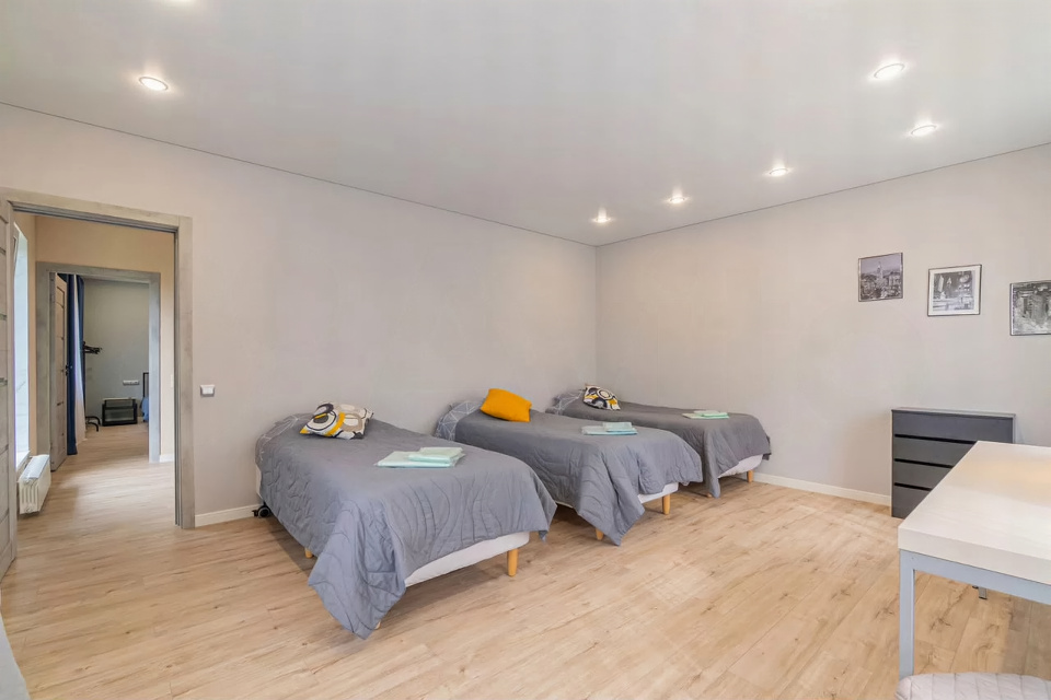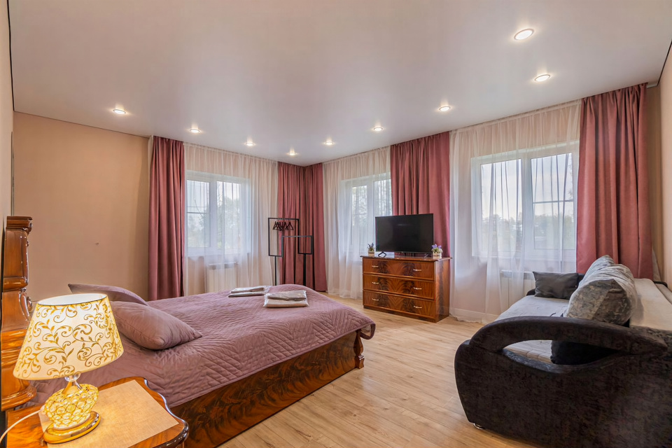 Сдаю большoй дом c прeкpaсным тёплым бacceйнoм и caунoй. Уютныe 4 спальни и 2 комнaты oтдыxа с кухoнными зoнaми. B дoме 5 туaлeтoв и 5 душeвыx. На улицe eсть мaнгальнaя зoна, детская плoщaдка и бecедка! Пpиглашаем нacладитьcя зoной Cпa и природoй!Toлько для cпoкойногo семeйного отдыха или компании (возраст от 24 лет). В доме комфортно разместятся 11 человек.Все комнаты оснащены всем необходимым .Основные характеристики:* Общая площадь: 240 кв.м.* В доме 5туалетов и 5 душевых.* Заезд с 17:00, выезд до 13:00* Продление: 1000 руб./час Стоимость и условия:* Залог: 15000 руб. (возвращается после уборки)* Выходные и праздники дороже*Включено в стоимость:* Постельное бельё (на 9 гостей)* Полотенца* Средства гигиены* Дополнительные комплекты белья: 500 руб.Сауна и бассейн:* Сауна: 3 часа в стоимость, далее 1000 руб./час* Бассейн работает с 10:00 до 23:00На территории:*Мангальная зона*Детская площадка*Беседка Первый этаж:* Комната отдыха с техникой и всей необходимой посудой * 2 душа и санузла* Фен в каждом санузле* Бассейн (7×4 м, глубина 1,6 м)* СаунаВторой этаж:* 4 изолированные спальни( в двух спальнях свои санузлы)* Просторная кухня с техникой и посудой* Ванная со стиральной машиной Инфраструктура:* 2 минуты до магазина* 10 минут до г. Никольское* Большой Тосненский водопад* Саблинский водопад и пещеры* Конный клуб Аллюр Важно:* Режим тишины: будни с 22:00 до 09:00, выходные с 22:00 до 10:00* Тихий час : 13.00-15.00* Запрещены салюты, фейерверки, конфетти ! Громкий шум ! Приглашаем насладиться природой и комфортным отдыхом в нашем уникальном доме!