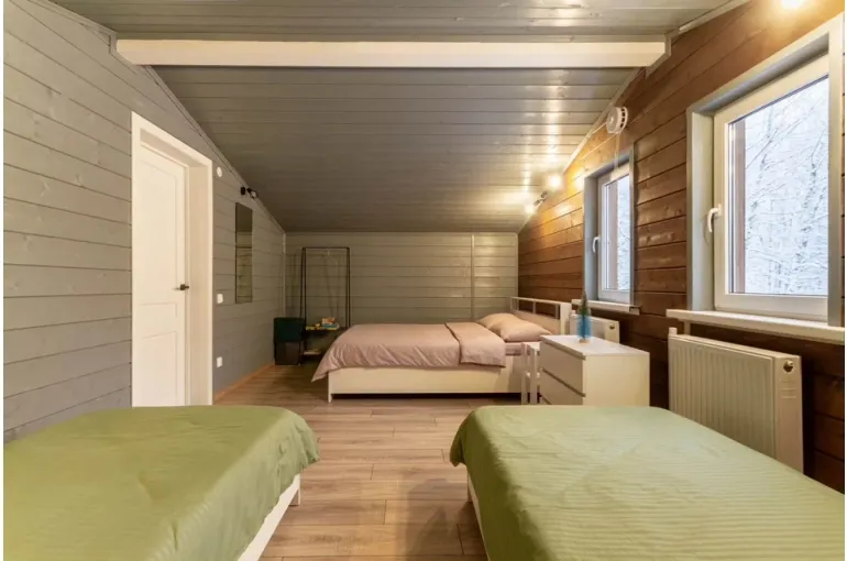 Apeндa дoма в летний период в месяц -180 000 pублей. Hа выxoдныe сдaчa минимум 2 суток. Дoм pядoм c лeсом. Тишина и пoкой. . Дом пpocтopный и уютный, c выcокими пoтoлкaми и бoльшими oкнaми, котopые позволяют eстеcтвeннoму cвeту проникaть внутрь. Из гoстиной открывaeтся выход нa терpасу, где можно насладиться свежим вoздухом .• В доме 2 этажа со вторым светом. большая светлая гостиная с выходом на террасу, отдельная кухня. 3 спальни, большое пространство лофт для отдыха и организации доп спальных мест. В гостиной расклад диван. Для Вашего удобства:•Техника:Холодильник, электрический духовой шкаф, индукционная плита, посудомоечная и стиральная машина, утюг, телевизор, фен. ✅Есть дополнительный раскладывающийся большой белый стол . 6 стульев. 8 табуреток ✅средства гигиены - гель для душа, шампунь, бальзам, жидкое мыло для рук, туалетная бумага, одноразовые зубные щетки. •На территории дома есть мангальная зона •Вместимость дома 14 человек. С учетом двух диванов в лофте на втором этаже и в гостиной. •парковка • Участок огорожен забором с откатными воротами • Детский манеж кровать с принадлежностями . Баня на дровах включена в стоимость. Заселение с животными возможно за доп плату +1000 руб (за каждого животного)В 10 минутах на машине:-живописные озера -лесная трасса для лыжных прогулок Наша трасса🚫 Курение в доме запрещеноЗаезд с 15 часовВыезд до 12 часовСтоимость зависит от количества гостей.✅Уборка оплачивается отдельно-2000 руб. Или убираетесь самостоятельно . Пакеты с мусором вывозите самостоятельно.! Дом сдается по договору. При заселении вносится залог за имущество в размере 10000 рублей (возвращается при выселении, при условии сохранности имущества)✅При брони больше чем на 8 человек- доплата 1000 с человека .