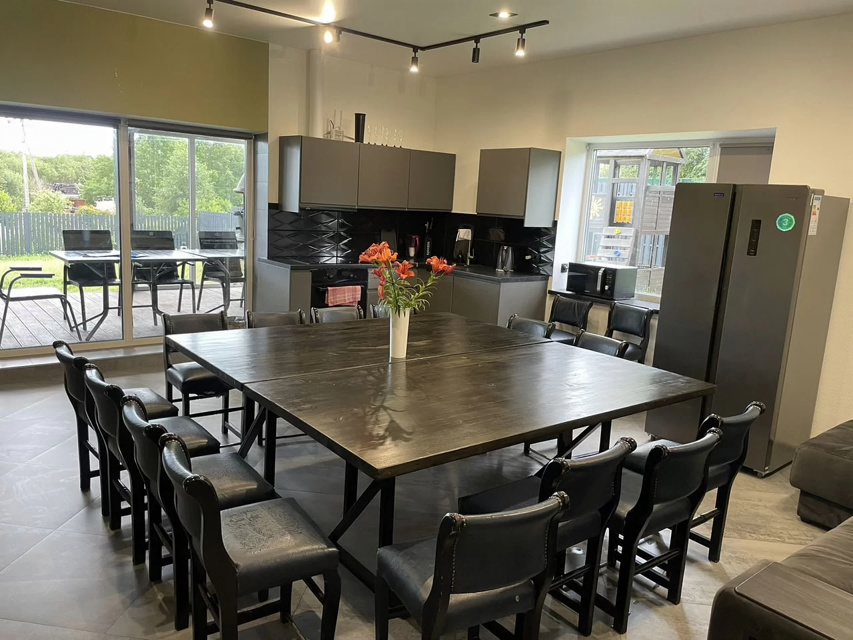 - в вашем распоряжении 2 больших стола (комфортное размещение в районе 14-18 человек)