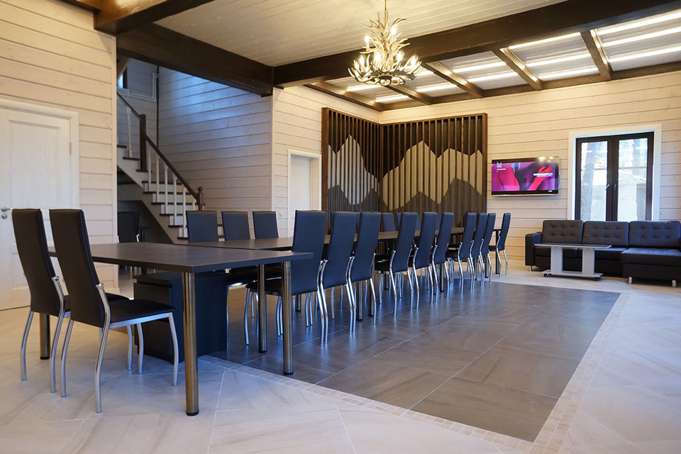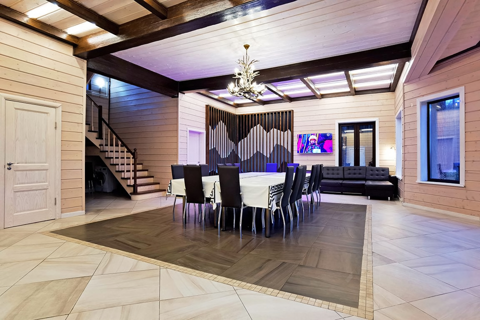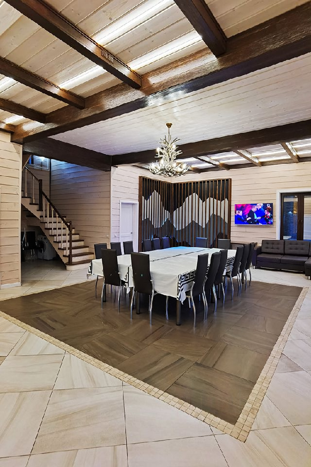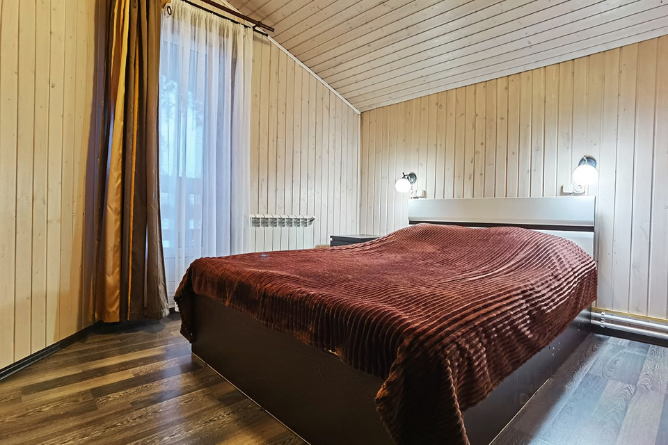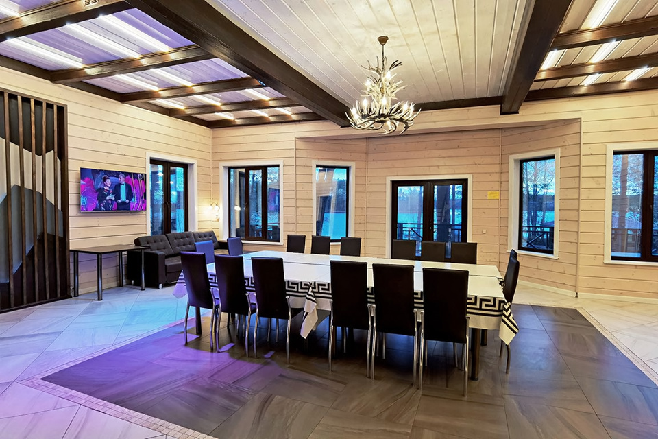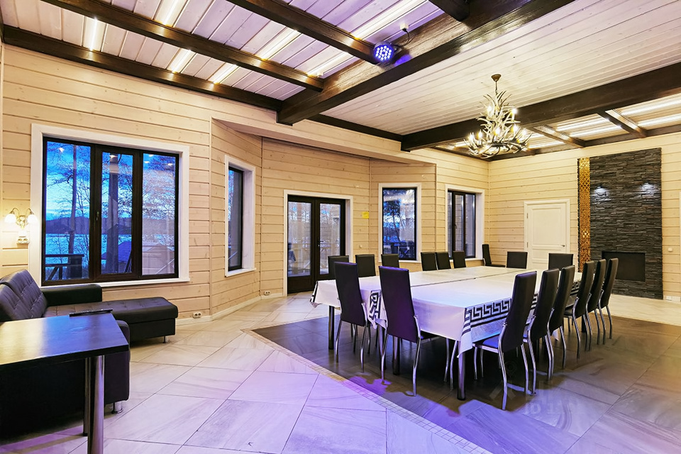 Шикарный двухэтажный коттедж Сосново на берегу озера с банкетным залом и видовой террасой, беседка на берегу, свой пирс и баня, в 60 км от города по Новоприозерскому шоссе. Общая площадь коттеджа 230 кв.м. - большая видовая терраса с мебелью; - прихожая с гардеробной; - большой красивый зал со столом на 40 человек, панорамными окнами с видом на озеро; - кухня со всей необходимой техникой; - 7 спальных комнаты; - 3 санузла и душевая; На огороженном участке 40 соток расположены: - беседка с мангалом; - баня-бочка на дровах (оплачивается отдельно 3000 рублей за 4 часа) баня на берегу озера (6000 рублей за 4 часа ); - маленькая беседка (2000 - сутки, по предварительному запросу); - волейбольная площадка с футбольными воротами ; - свой пирс, можно, взять в прокат лодку и катамаран за 100 рублей/день, дополнительно вы можете арендовать 10-литровый казан за 1 000 рублей, тандыр за 1 500 рублей и коптильню за 500 рублей) Рядом с домом: - сосновый лес; - в 3 км горнолыжный курорт Игора.