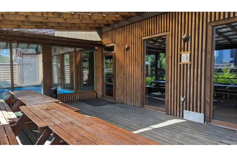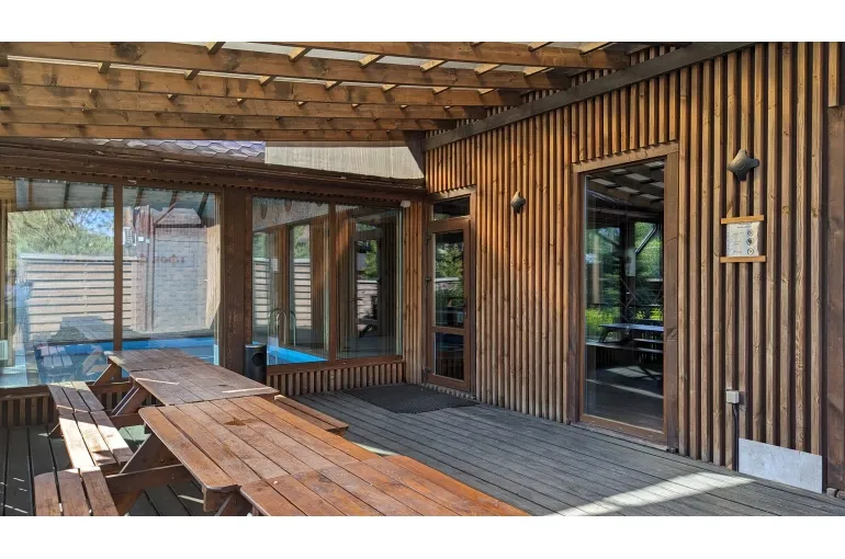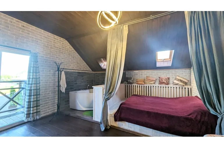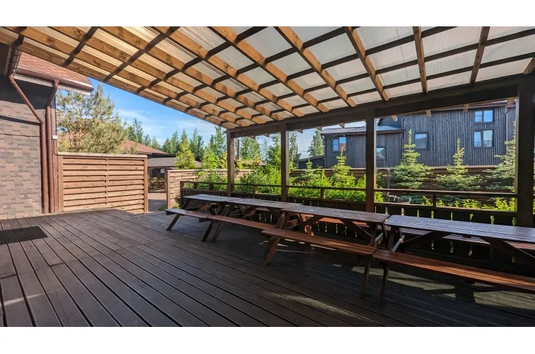 Продолжение отдыха после праздника и на следующий день может пройти здесь же: в комфортабельном коттедже, который рассчитан на 45 спальных мест. Бильярд, баня, бассейн и лаунж зона в вашем распоряжении. А комплекс при этом закрывается только под вас. Именно поэтому вас ждет отдых безупречного качества и атмосфера незабываемого праздника на протяжении всего дня.