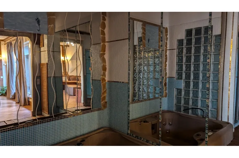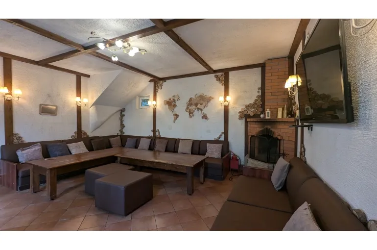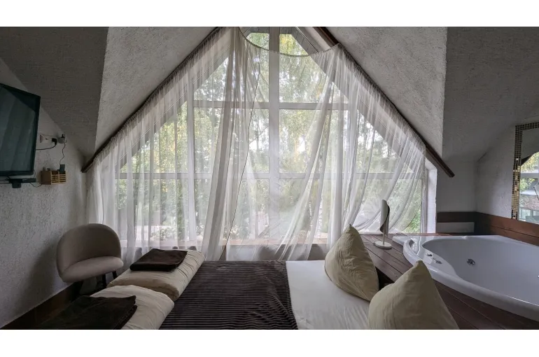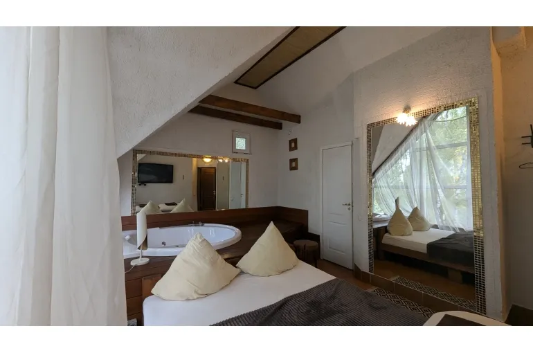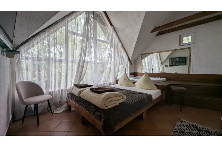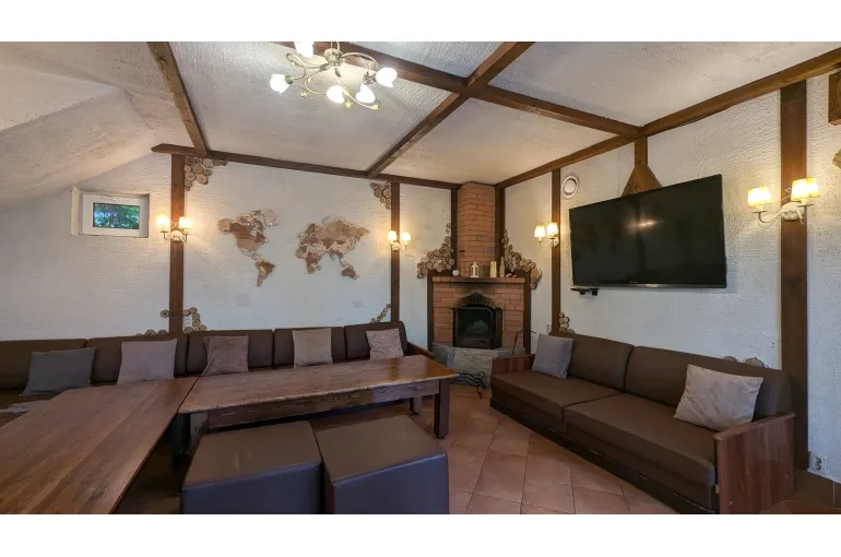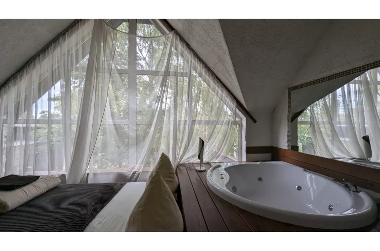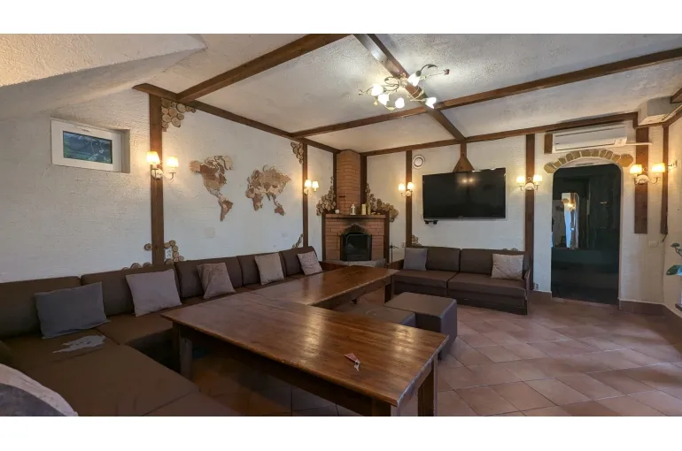 Коттедж с банным комплексом и двумя джакузи. Дом готов принять до 10 человек и расположен на территории банкетной усадьбы с рестораном. Для вашего удобства предоставляется сауна, просторная комната с камином и кухня со всем необходимым оборудованием. Панорамные окна с видом на озеро и просторная терраса с мангалом обеспечат Вам прекрасный отдых. В коттедже 3 спальни с кондиционерами и отдельными санузлами.