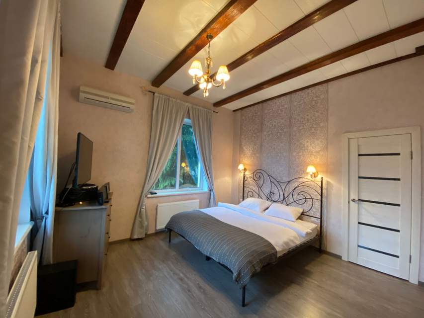 Уютные спальни второго этажа с личными гардеробными, кондиционерами и тв комфортно разместят гостей для отдыха. Каждая кровать застелена белоснежными сатиновыми постельными комплектами белья и полотенцами. На этом же этаже можно расслабиться в джакузи.
