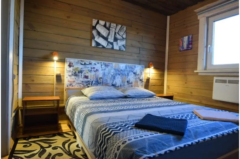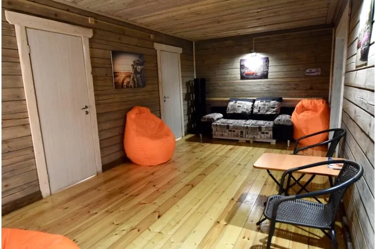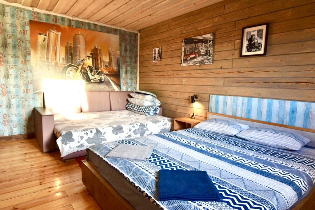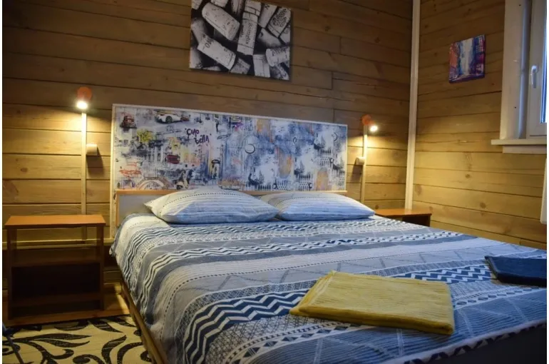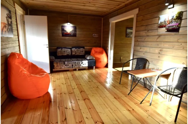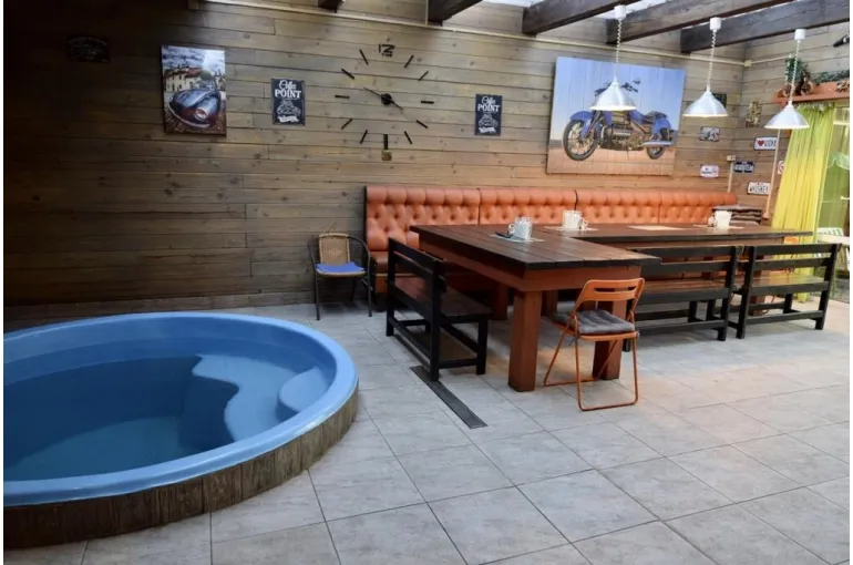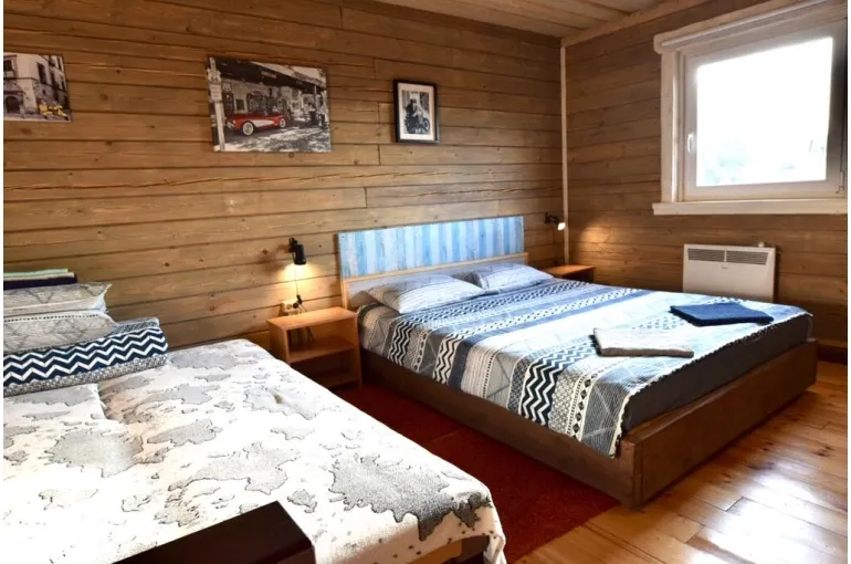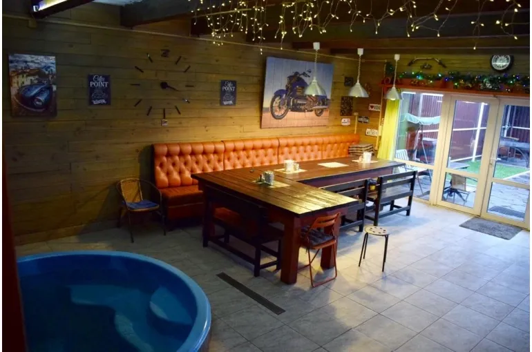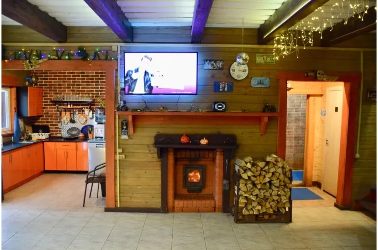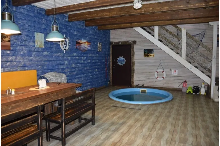 Загородный дом с баней на дровах и бассейном-купелью под Петергофом - комплекса Владимирские бани. Удобное транспортное расположение - находится в 10 мин. от Петергофа (Фонтаны), внутри КАД - (2 км до сьезда на Петергоф - фонтаны/Ропшинское ш.). Дом сдается как посуточно (приготовлены 6 спальных комнат на 12 человек + 4 дополнительных места на диванах), так и на почасовую аренду от 4х часов (кроме субботы), с целью попариться в настоящей русской бане или провести торжество с семьей/друзьями в загородном доме, за большим столом, приготовить шашлык на мангале. Вас ждет: - просторный, закрытый двор с мангалом для приготовления мяса и др. блюд (шампура и решетка для мяса в наличии); также стол на 10 человек под навесом на улице. - комната отдыха с большим столом на 16-18 человек и оригинальным диваном, ТВ, муз. колонкой; - 6 комфортных спальных комнат с чистым бельем (12 спал. мест + 4 доп. места на 2-х диванах); - настоящая русская парная на дровах (дрова предоставляются. Печь, по желанию, затапливается к Вашему приезду или позже Вами самостоятельно) - бассейн-купель (диаметр - 2,5 м, глубина 1 м 60 см), вода в котором фильтруется постоянно и обновляется регулярно, температура держится около 27 градусов. - душевая комната с 2-мя душами и ведром холодной воды; - полноценная кухня (раковина с гор/хол водой, эл-плитка, микров. печь, холодильник, посудомойка, набор посуды на 18 чел.); - бесплатный WiFi, телевизор и муз-центр. НЕ сдаётся лицам младше 21 года! НЕ подходит мод молодежные вечеринки, выпуски и ночные мероприятия с фейерверками! Обязательно соблюдение закона о тишине после 22:00 на улице и во дворе. Подлючение своих муз. колонок и салюты поблизости - запрещены! При бронировании обязательна предоплата в размере 50%. При заезде обязателен залог (страховой депозит) 10 000 руб. Финишная уборка за ними, гостям надо только помыть за собой посуду. Стандартный въезд с 16:00, выезд до 14:00, но бывают сдвиги на час раньше или позже - для доп. профилактики бассейна между соседними забронированными датами (уточнять при бронировании). Стоимость при заселении до 16 чел: