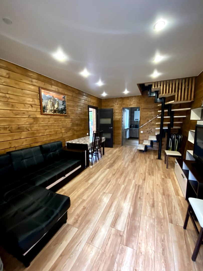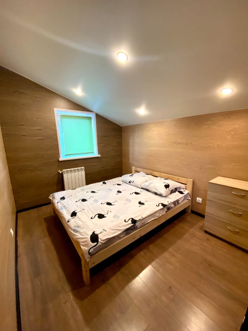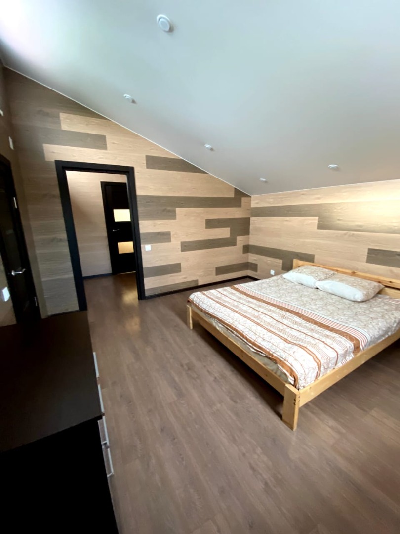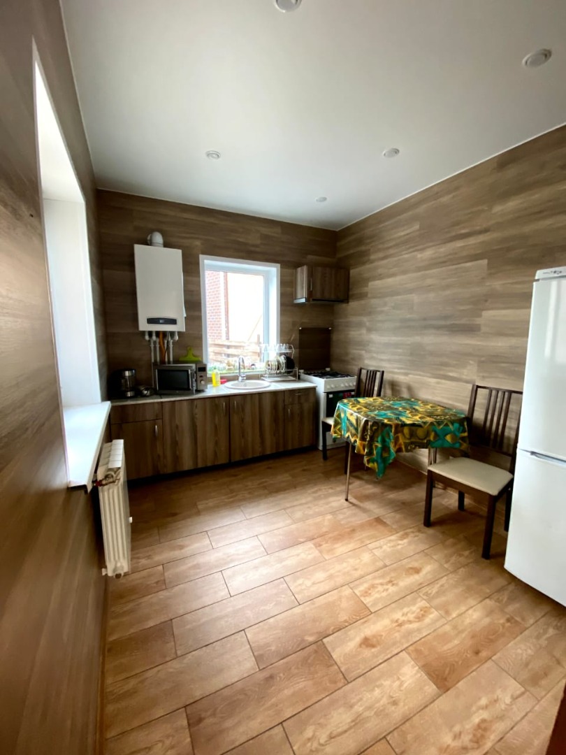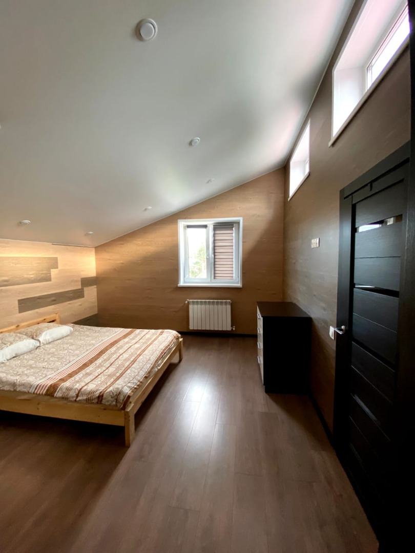 Коттедж вмещает до 10 человек. Комфортное размещение до 8 человек. Есть все необходимое: - 4 двухспальных места (+2доп.) - плазма -спутниковое телевидение - посуда - постельное белье - полотенца - стиральная машина - мангал - мебель на террасе - Wi-Fi Все чистое,новое,дом только построен. По всему первому этажу теплые полы. Выход из дома на просторную террасу. На территории садоводства есть магазин.