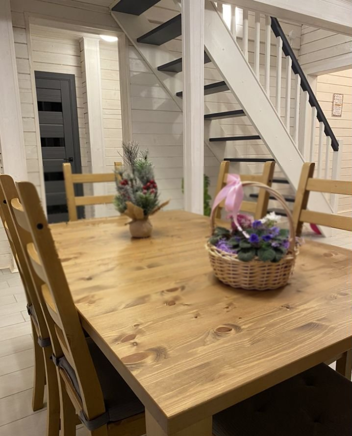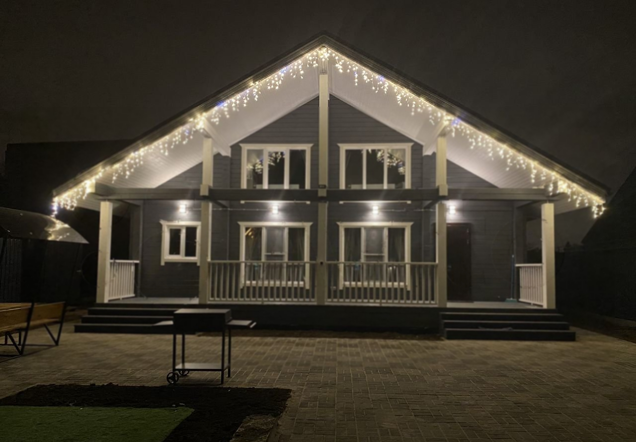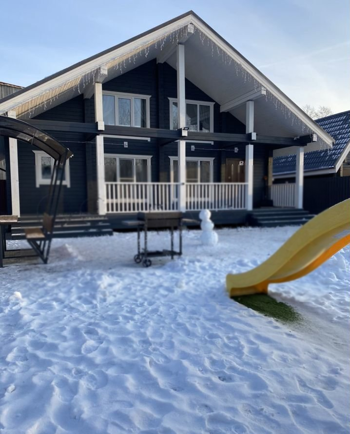 Коттедж полностью оборудован для проживания. Двухэтажный коттедж рассчитан на компанию 6-8 человек. На территории беседка,барбекю-зона (мангал),детская площадка,зелёная территория с качественным освещением, уютная веранда с комфортными креслами.