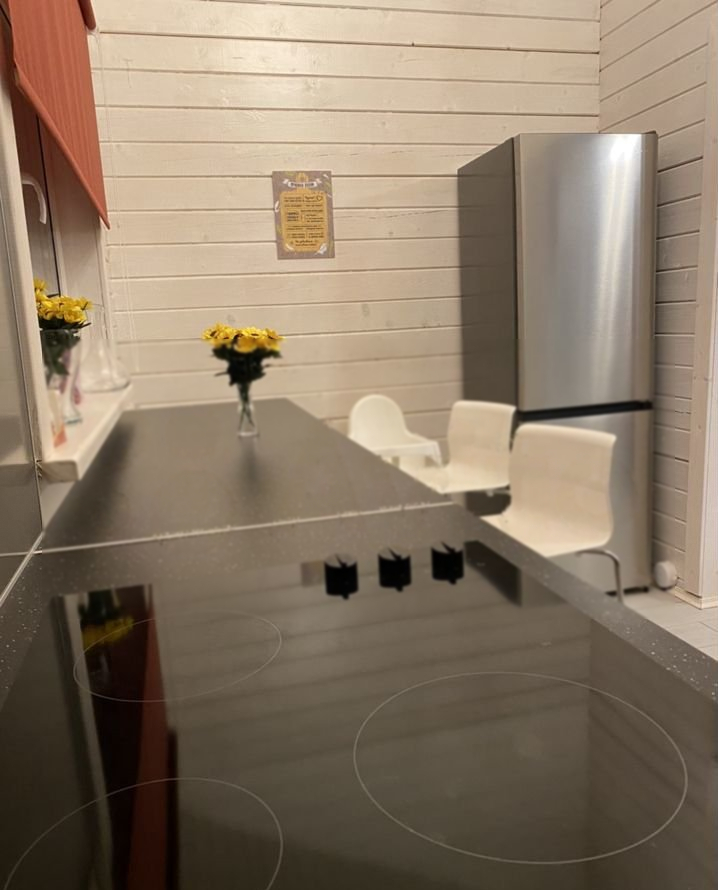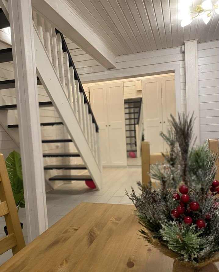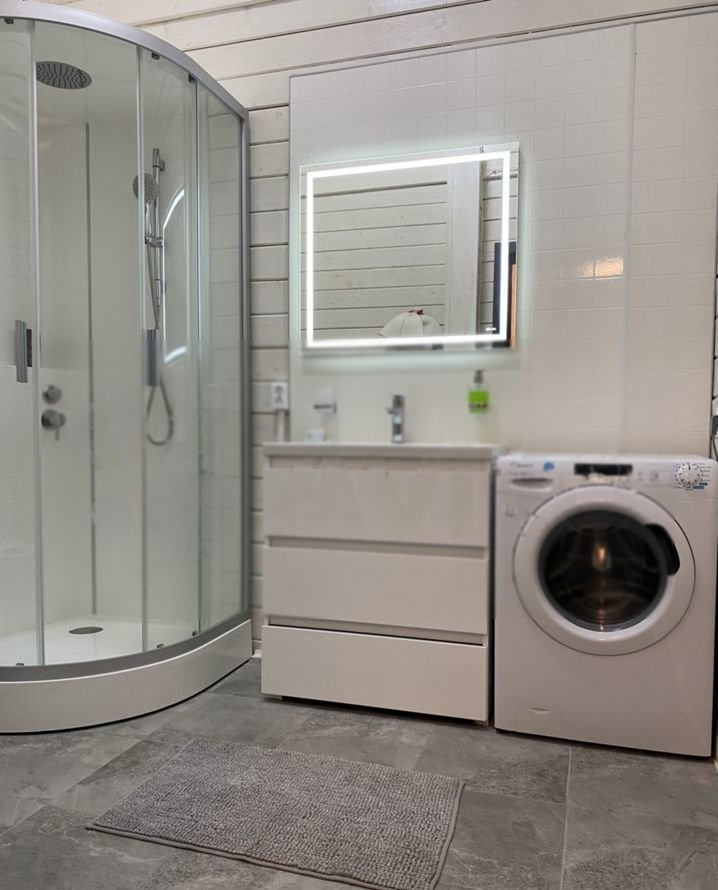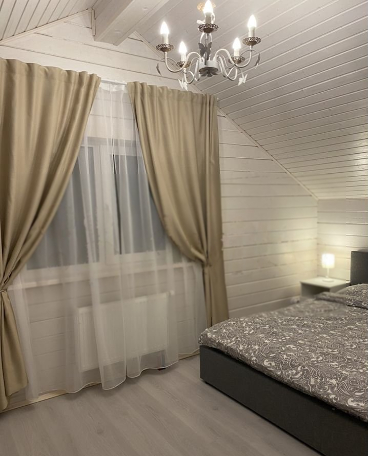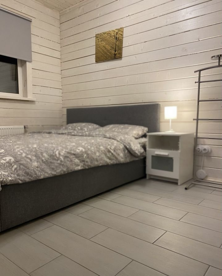 В коттедже:сауна,огромная гостиная с телевизором и спутниковым ТВ, музыкальная колонка,wi fi,большая кухня с холодильником,плитой,микроволновой печью,посудомоечной машиной,духовкой,чайником, бокалами, тарелками и столовыми принадлежностями; 3 отдельные спальни с двухспальными кроватями, комфортная ванная комната с стиральной машинкой, душевой кабиной и зеркалом с подсветкой, в прихожей имеется огромный шкаф для хранения вещей. Постельное белье,полотенца,средства гигиены и пользование сауной входят в стоимость аренды