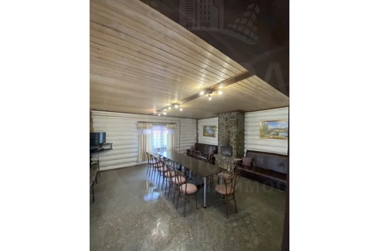 - Гостиная с двумя диванами,камином и столы для праздника, есть спутниковое ТВ и караоке.