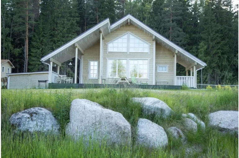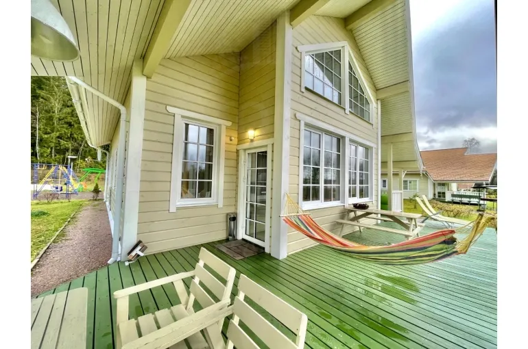 Новый финский коттедж "СЧАСТЬЕ": 150 м2 со вторым светом и сауной, рассчитанный на комфортное размещение 10 человек. Расположен в маленьком комплексе из 9 домов " Русская Красавица", в сосновом лесу на самом берегу озера. На территории есть кафе! В подарок ЗАВТРАКИ, а также мастер-классы по йоге, караоке, вечерние киносеансы для детей и взрослых. В коттедже 4 спальни, кухня, столовая-гостиная, 2с/у, сауна, камин и большая терраса. Для Вашего удобства весь первый этаж отапливается тёплыми полами. Постельное белье, полотенца, посуда, принадлежности для барбекю - входят в стоимость аренды. Принимаем гостей с собачками комнатных, ручных пород. WI-FI и спутниковое ТВ. Бесплатная зона отдыха на берегу озера, детская площадка, волейбольная площадка, горка для ватрушек, ватрушки и финские сания Бесплатный прокат лодок, мини-гольф, бадминтон, настольный теннис, стрельба из лука, слэклайн. Прокат удочек, лодочных электромоторов, велосипедов. За дополнительную плату, по предварительному запросу - лазертаг и прокат квадроциклов.