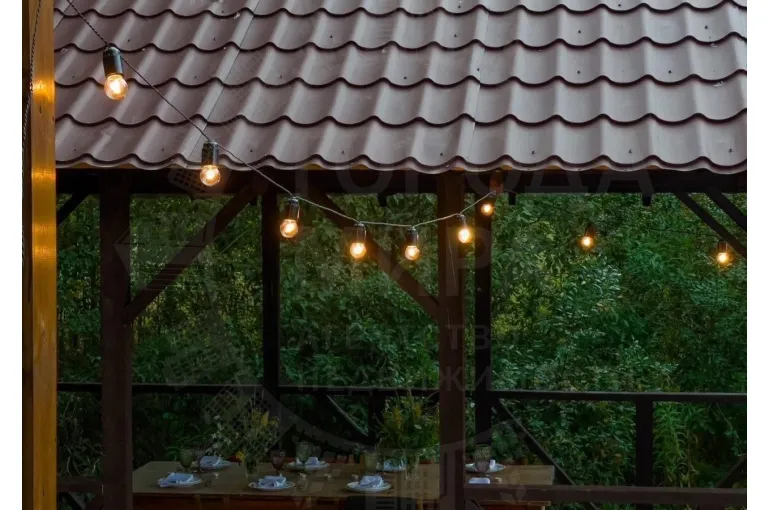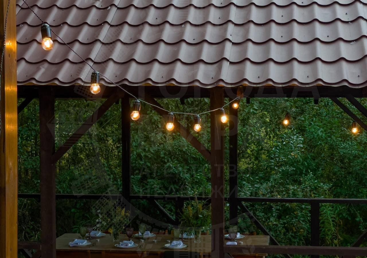 На территории расположена крытая беседка, зона-навес для мангалов и барбекю.