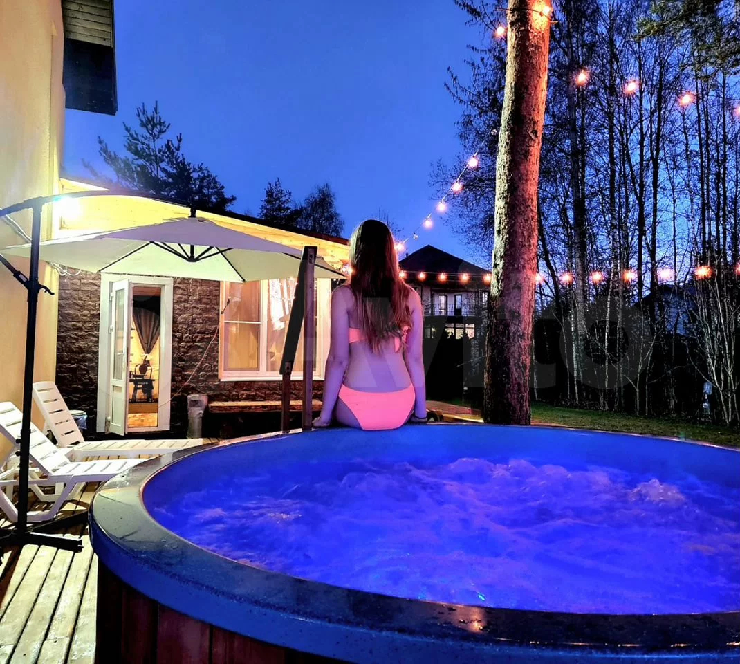 🌞 Джакузи с подогревом, аэромассажем и романтической подсветкой, под открытым небом🌌🌲