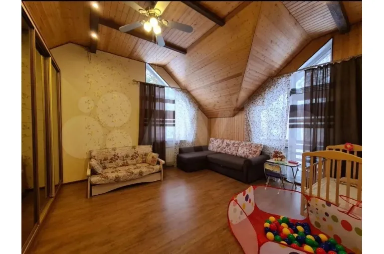 На улице растут сосны и туи, летом: гамак,для детей батут,качели и песочница.На территории СНТ есть детская площадка,спорт.зона с тренажёрами,площадка для игры в волейбол и магазины: Магнит, ОЗОН, фермерский.