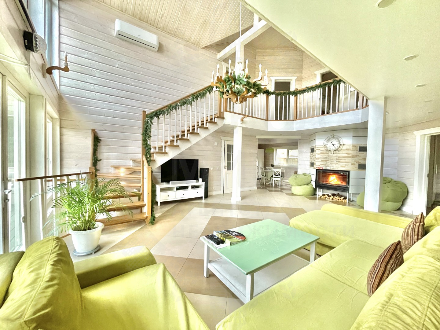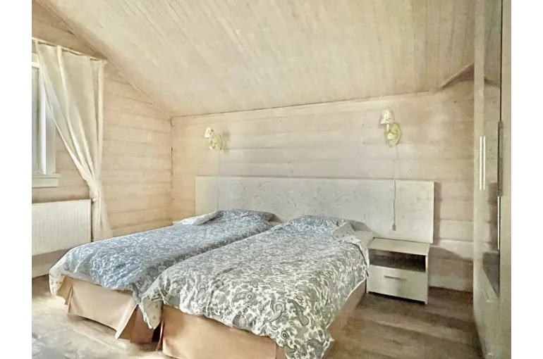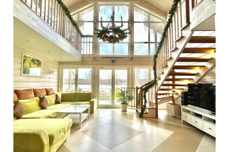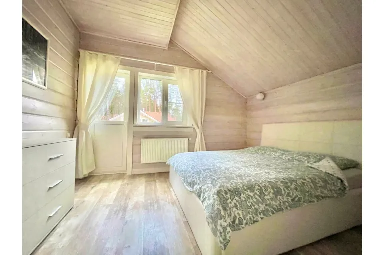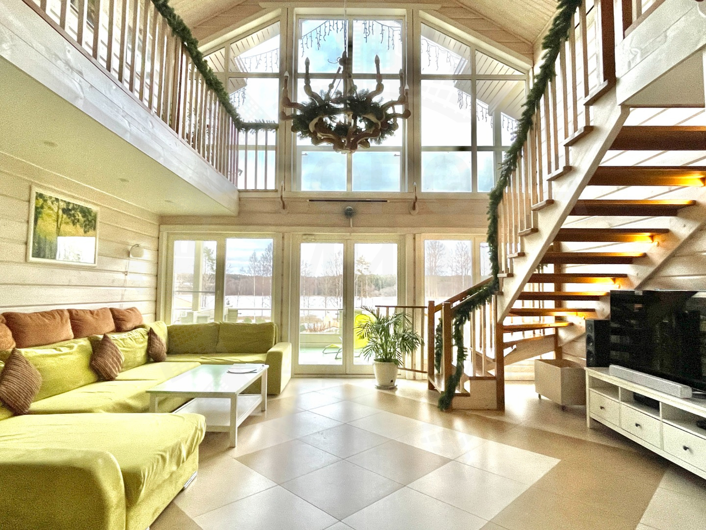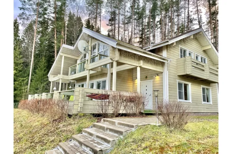Новый финский коттедж (с сауной и камином) 200м 2 со вторым светом в маленьком комплексе из 9 домов "Русская Красавица" с инфраструктурой и всем необходимым для отдыха. Выборгский район, п. Межозерное,на берегу озера "Красавица", в сосновом лесу.  5 спален, кухня, столовая-гостиная, 2с/у, сауна, камин, огромная терраса. Рассчитан на комфортное размещение 12 гостей. Для Вашего удобства весь первый этаж отапливается тёплыми полами, кондиционер. WI-FI и спутниковое ТВ, аудиосистема. Постельное белье, полотенца, посуда, принадлежности для барбекю - входят в стоимость аренды.  Бесплатно - мини-гольф, прокат лодок, отличная рыбалка, бадминтон, теннисные столы, стрельба из лука, детская площадка.  За дополнительную плату - прокат лодочных электромоторов, удочек, велосипедов.  По предварительному запросу - прокат квадроциклов, лазертаг. Размещение с животными в коттедже невозможно.  а также мастер-классы по йоге, караоке, вечерние киносеансы для детей и взрослых.
