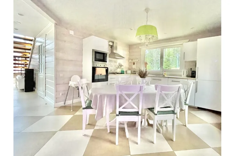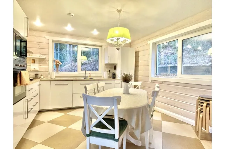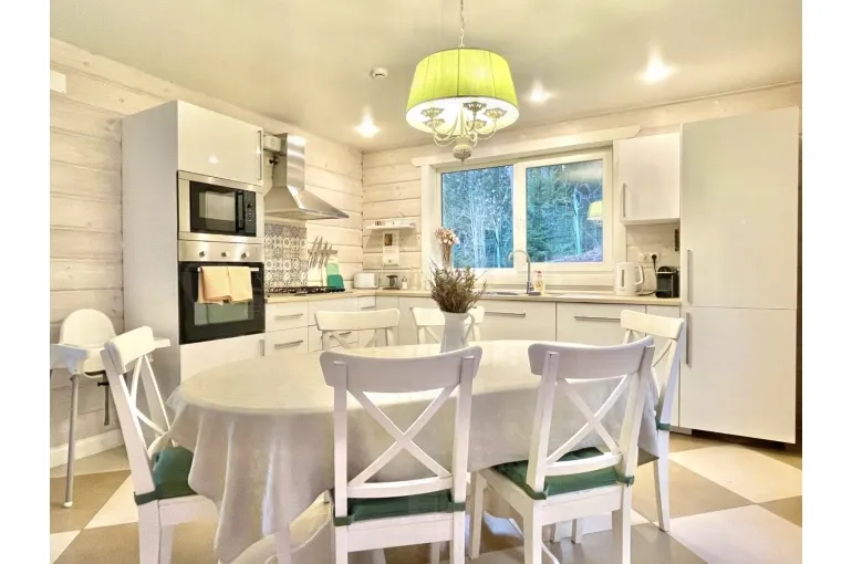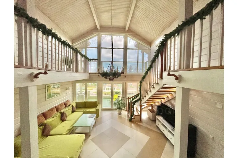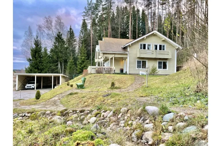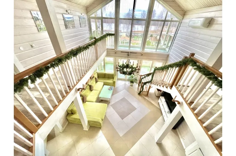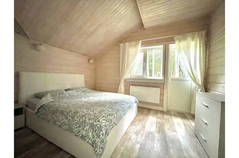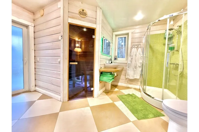Новый финский коттедж (с сауной и камином) 200м 2 со вторым светом в маленьком комплексе из 9 домов "Русская Красавица" с инфраструктурой и всем необходимым для отдыха. Выборгский район, п. Межозерное,на берегу озера "Красавица", в сосновом лесу.  5 спален, кухня, столовая-гостиная, 2с/у, сауна, камин, огромная терраса. Рассчитан на комфортное размещение 12 гостей. Для Вашего удобства весь первый этаж отапливается тёплыми полами, кондиционер. WI-FI и спутниковое ТВ, аудиосистема. Постельное белье, полотенца, посуда, принадлежности для барбекю - входят в стоимость аренды.  Бесплатно - мини-гольф, прокат лодок, отличная рыбалка, бадминтон, теннисные столы, стрельба из лука, детская площадка.  За дополнительную плату - прокат лодочных электромоторов, удочек, велосипедов.  По предварительному запросу - прокат квадроциклов, лазертаг. Размещение с животными в коттедже невозможно.  а также мастер-классы по йоге, караоке, вечерние киносеансы для детей и взрослых.