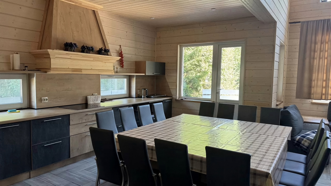 В доме 9 спален разного формата на 18 человек. Есть мастер- спальни и спальни с раздельными кроватями. Большая кухня в которой есть все. Много посуды. К дому пристроена русская баня . Топим по требованию за доп оплату. На территории есть отдельно русская баня с горячей и холодной купелью. Крытая собственная мангальная зона. Детская площадка, спортивная площадка, висячие качели. Не далеко красное озеро. Есть скидка в ресторан беладжио. Клуб Трава ( 10 минут на машине) предоставляет катание на лошадях, клуб Давинчи ( 15 минут на машине) - веревочный парк. Зимой рядом горнолыжные курорты. По возможности можем предоставить кейтеринг.