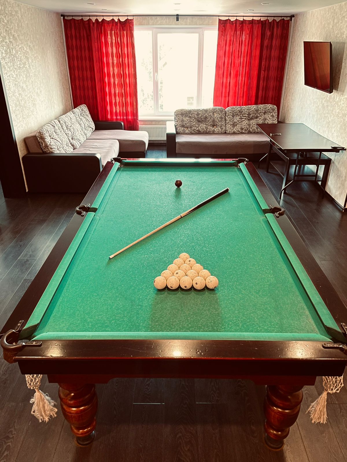 Для Вашего удобства предоставлены: вся необходимая мебель и бытовая техника, постельное белье, посуда, бильярд, частный огороженный двор, парковка.