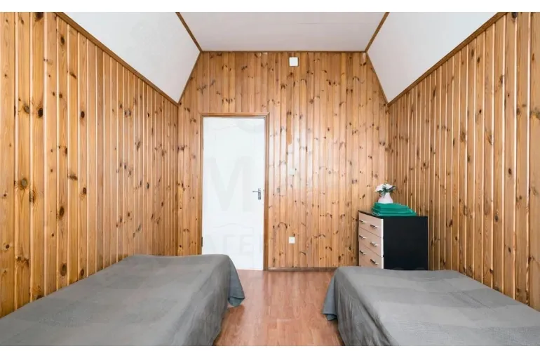 8 спален, гостиная, кухня, 27 спальных мест +2 детские кроватки, 2 сан.узла, (Душевая кабинка и ванная), сауна.