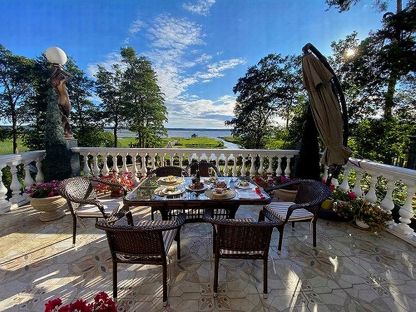 Усадьба "В Гостях у Нобеля" находится 1,5 часа от Петербурга в поселке Ландышевка ( 25 мин от Выборга).Двухэтажные коттеджи на четверых, вилла, Двухместные номера. В проживание входит завтраки, зона барбекю, Бильярд, Пин понк, Парковка.Спа зона хамам и бассейн оплачивается отдельно. Обед и ужин можно заказать заранее. Финальная уборка 5.000р. Панорамный ресторан на 80 человек, гостиница на 32 человека, бар на 30 человек, Мини-Гольф, парковка на 20 машин, 2 Га земли. Есть причал для яхт и вертолетная полощадка, пристань на 30 человек, красивое место для выездной регистрации.