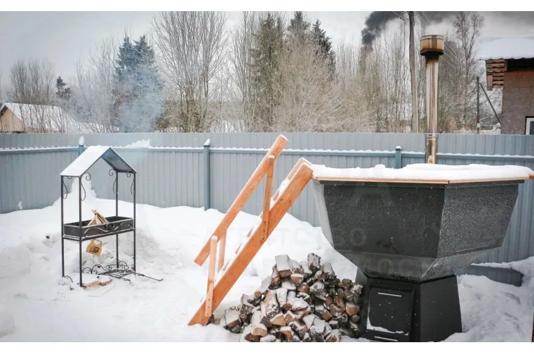 Особенно приятно и полезно принимать купание в чане в дождливую , снежную, морозную погоду