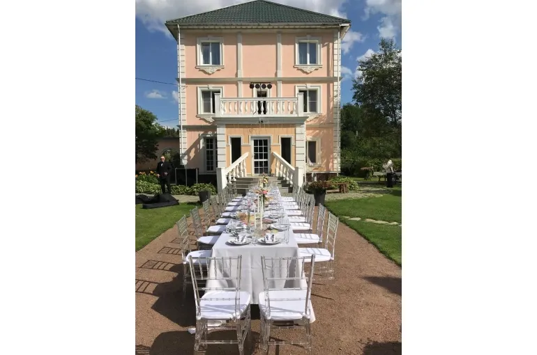 На всех ресурсах вы можете найти потрясающие дома! И больше, и красивее, и ближе к дому! На любой вкус. Но ландшафт участка уникальный , таких больше нет. Не считая, конечно, Петергофа. Построена балюстрада с балясинами для выездной регистрации и как фотозона,