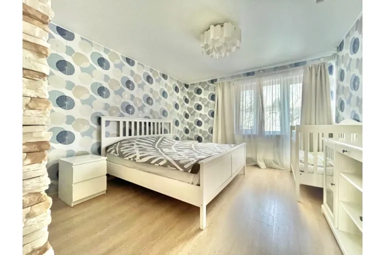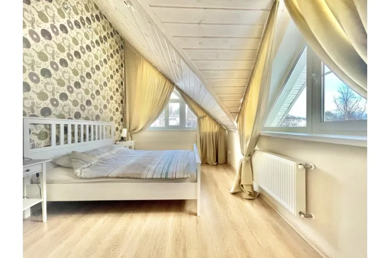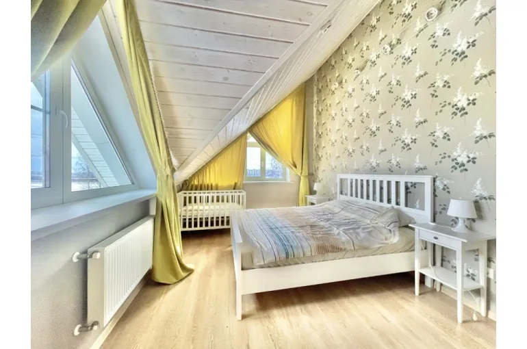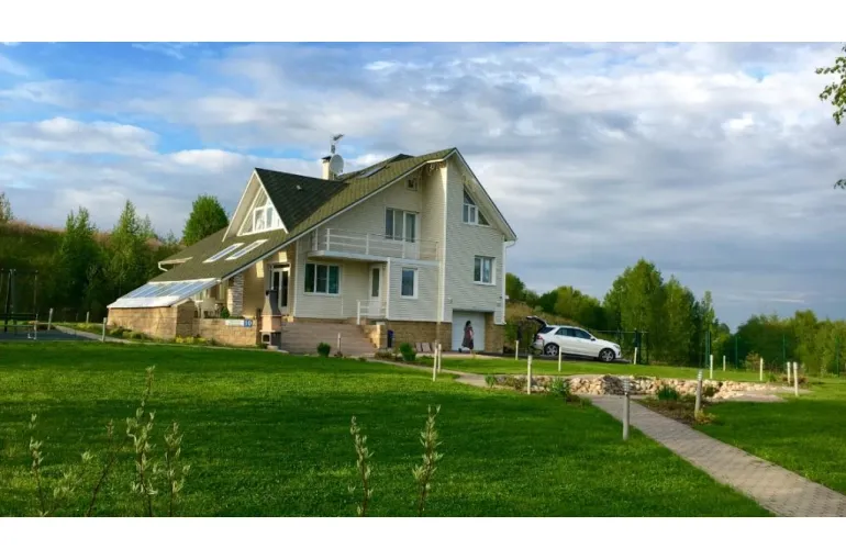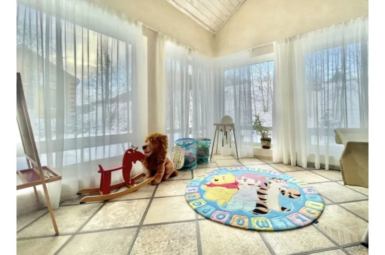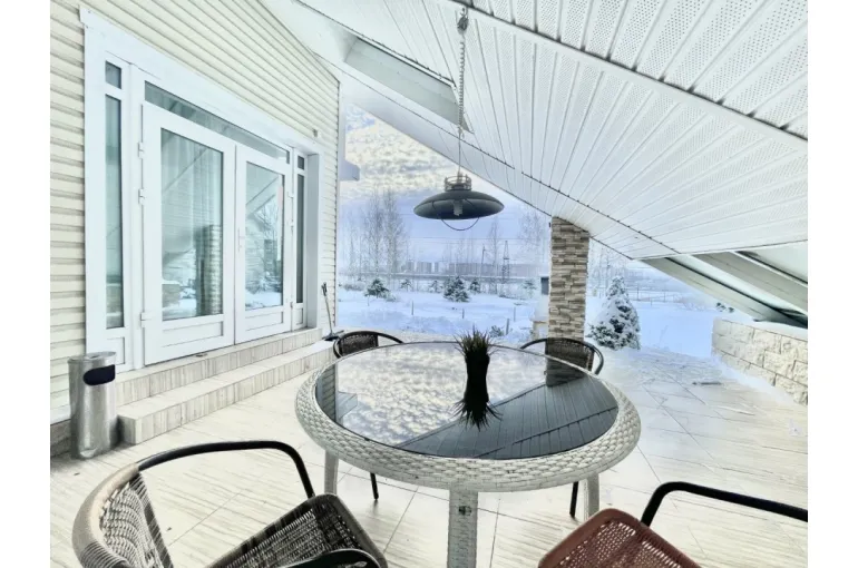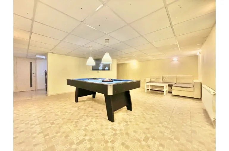 4 спальни с двуспальными кроватями, 3 гостиные с большими диванами, 3 санузла, кухня-столовая (газовая плита, духовка, холодильник, посудомоечная машина, стиральная машина, микроволновая печь, чайник, тостер, посуда для приготовления и сервировки на 14 персон), зимний сад/игровая комната, сауна, бильярдная и большая терраса.
