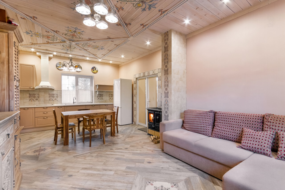 Коттедж БарнХаус с русской баней и банкетным залом для комфортного отдыха и более длительного проживания. Коттедж расположен в тихом посёлке, который граничит с заповедной зоной Коркинских озёр. Количество спальных мест: 20 спальных мест 6 полноценных спален + 4 проходных. Уютный банкетный зал со стильной мебелью и декором. Расстояние от КАД: 10 км. Месторасположение: Всеволожский р-н, дер.Вирки, Коркинское озеро. В доме ручная роспись стен, индонезийская мебель ручной работы, современная техника, качественное белье и посуда. Просторный светлый зал со вторым светом, тёплыми полами, просторной террасой. Русская баня с огромной парилкой на 8-12 гостей. Которую затопят для вас к удобному времени. Оплачивается отдельно - 4000 рублей за протопку. Охраняемая закрытая территория, детская площадка. Залог: 30000 рублей. Стоимость аренды : 1 сутки в будни на 12 чел 20000 руб 2 суток в будни на 12 чел 35000 руб 3 суток в будни на 12 чел 53000 руб 1 сутки с пт на сб на 20 чел 40000 руб 1 сутки с сб на вс на 20 чел 50000 руб 2 суток с пт по вс на 20 чел 75000 руб Доплата за последующих гостей - 1000 рублей. Подойдёт для :Тренинги, Семинары,юбилей, семейный отдых, Детский праздник , более длительное проживание, рядом Всеволожск ,Кудрово, Дыбенко, Озера.