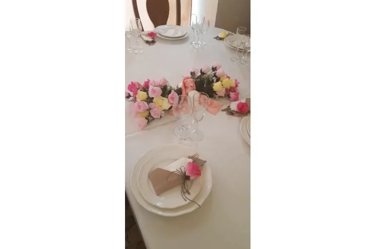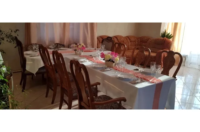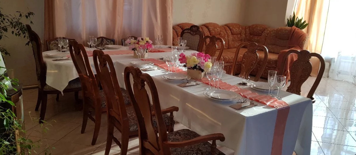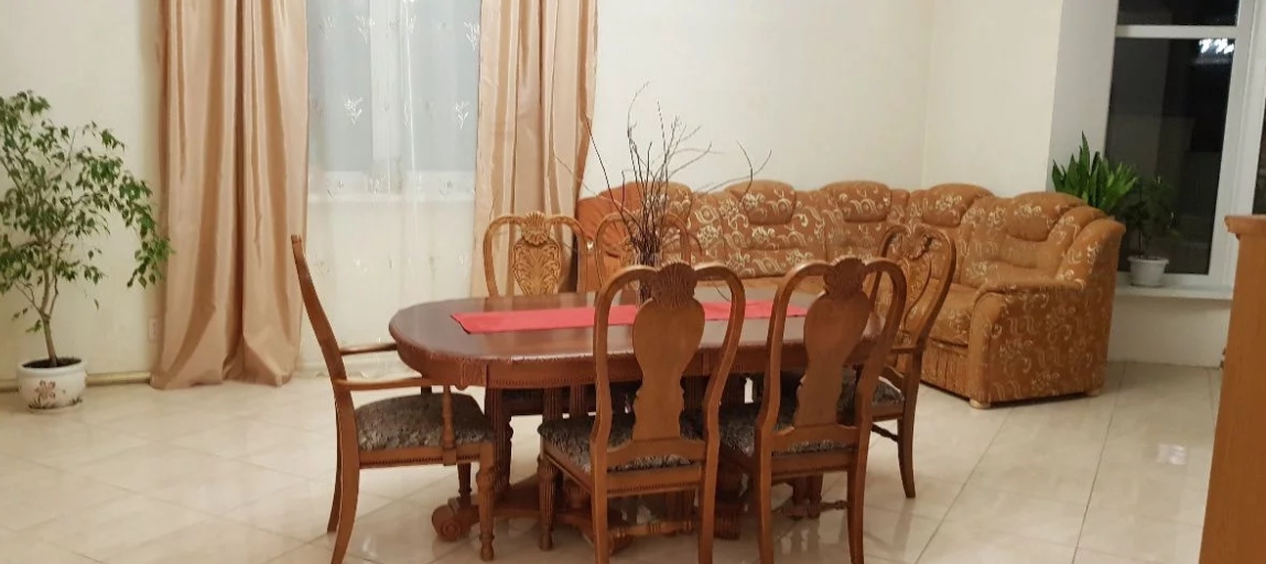 В гостиной коттеджа можно производить банкеты, свадьбы, вечера отдыха или просто встречу друзей до 15 и чуть чуть больше гостей. СТОИМОСТЬ - 7500.00 (с вс. по чт.) при заселение до 5 гостей. НАЙМ СУТОЧНЫЙ сутки (входят 3 тех. часа). СТОИМОСТЬ - БУДНИ: Пн, вт, ср, чт - 12000.00. ВЫХОДНЫЕ : Пятница - 17000.00. Суббота - 18000.00. Воскресенье - 14000.00. ПРАЗДНИЧНЫЕ - 18000.00. УСЛОВИЯ - 10 гостей входят в стоимость найма, с каждого последующего гостя: с 14 лет - 750 рублей. Бронь 4000.00 ( не возвратная, при форс-мажорах: отмене заезда и прочее ) входит в стоимость найма. Скидки не суммируются. Для постоянных гостей скидки. Возможны изменения времени заезда/выезда, оговариваются. Поздний выезд, возможен при отсутствии заезда, в день выезда. ЗАЕЗД - 15.00 ВЫЕЗД - 12.00 !!! Оплачивая бронь, Вы соглашаетесь с условиями найма !!!! Бронь без оплаты не устанавливается. Бронь оплачивается онлайн. Найм оплачивается при заезде. Страховой дипозит 10000.00 вносится при заезде. Приглашая гостей, Вы берете на себя ответственность за их поведение. Из страхового дипозита вычитается стоимость ущерба. При отсутствии ПРИЧИНЕННОГО УЩЕРБА, возвращается полностью при выезде!!!! Или не полностью ( при форс - мажорах ). КУРИТЬ В ДОМЕ, СТРОГО ЗАПРЕЩЕНО! ОГРАНИЧЕНИЕ ПО ШУМУ ! - ночным временем следует считать период с 22.00 до 8.00 часов. МЕСТО ДЛЯ КУРЕНИЯ, КАЛЬЯН НА УЛИЦЕ. Соблюдайте чистоту. Берегите имущество. МЫ ПРЕДЛОЖИМ ВАМ - - повара, - официанта, - доставку шаров. Гостям предлагается постельное белье, ванные принадлежности, полотенца, кухонная утварь, посуда для сервировки, муз. центр, цветовой проектор, тв, микроволновка, чайник, Йкофеварка, посудомоечная машина, газовая плита, духовка, холодильник, многое другое... Парковка, беседка, мангал, шампура, решетки для мангала и наше радушие бесплатно.