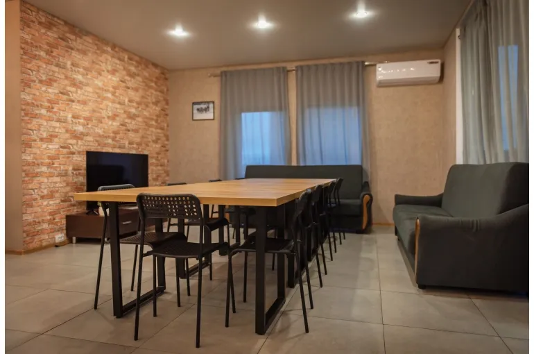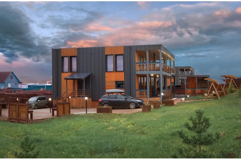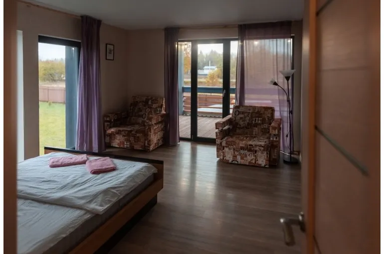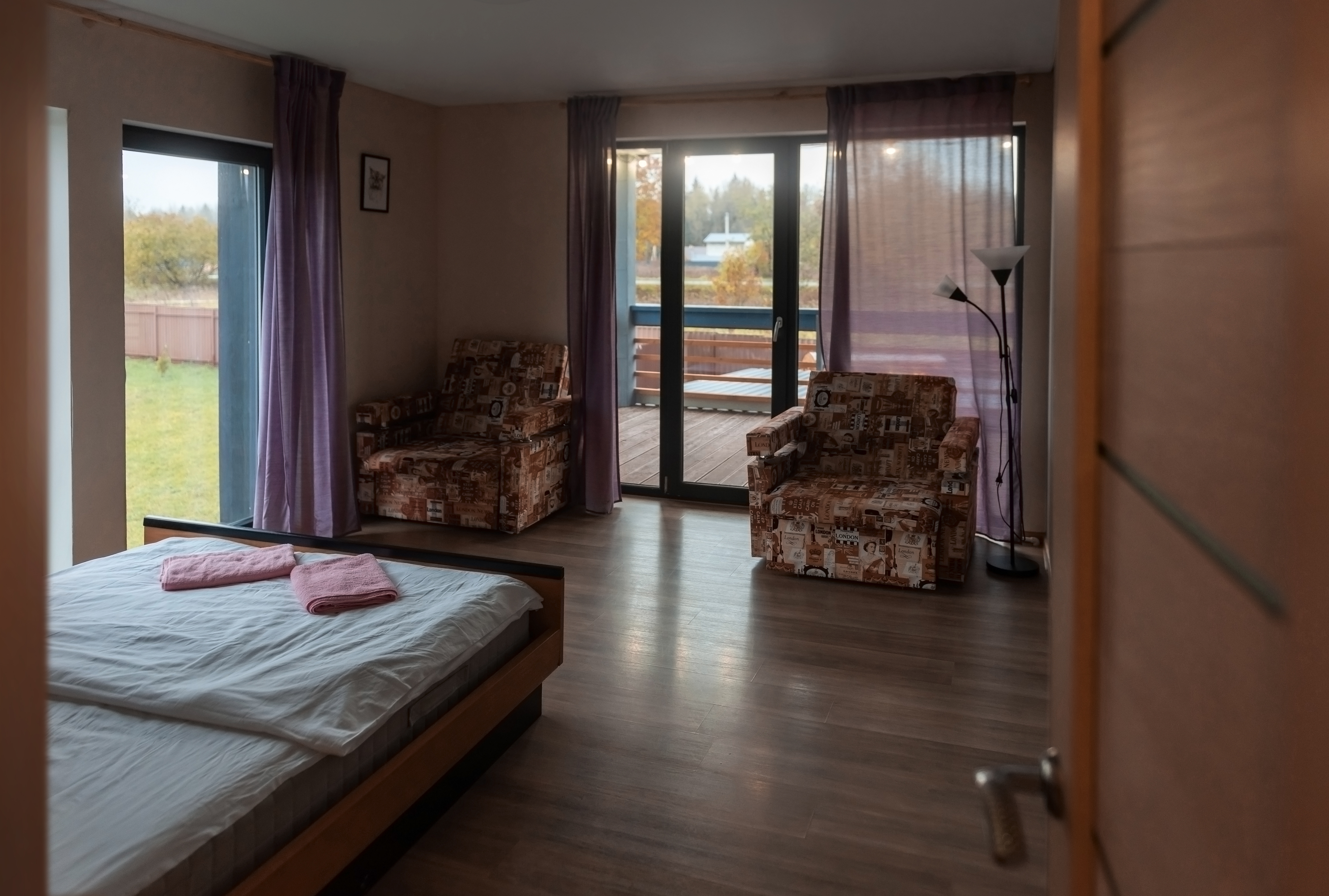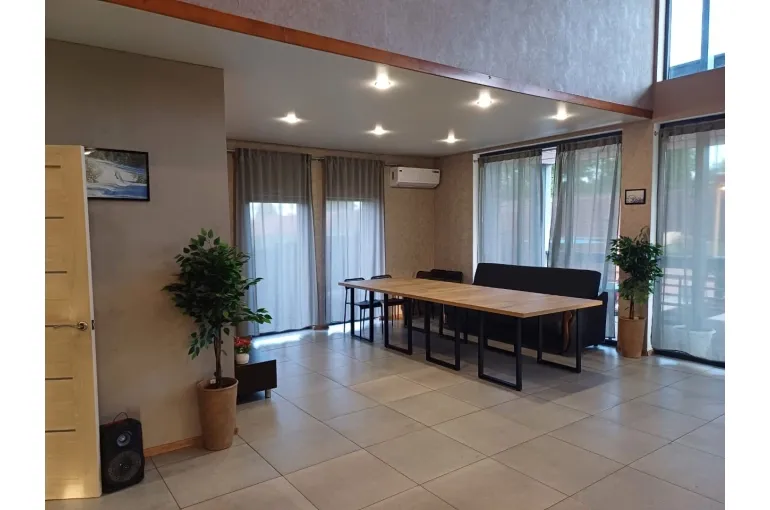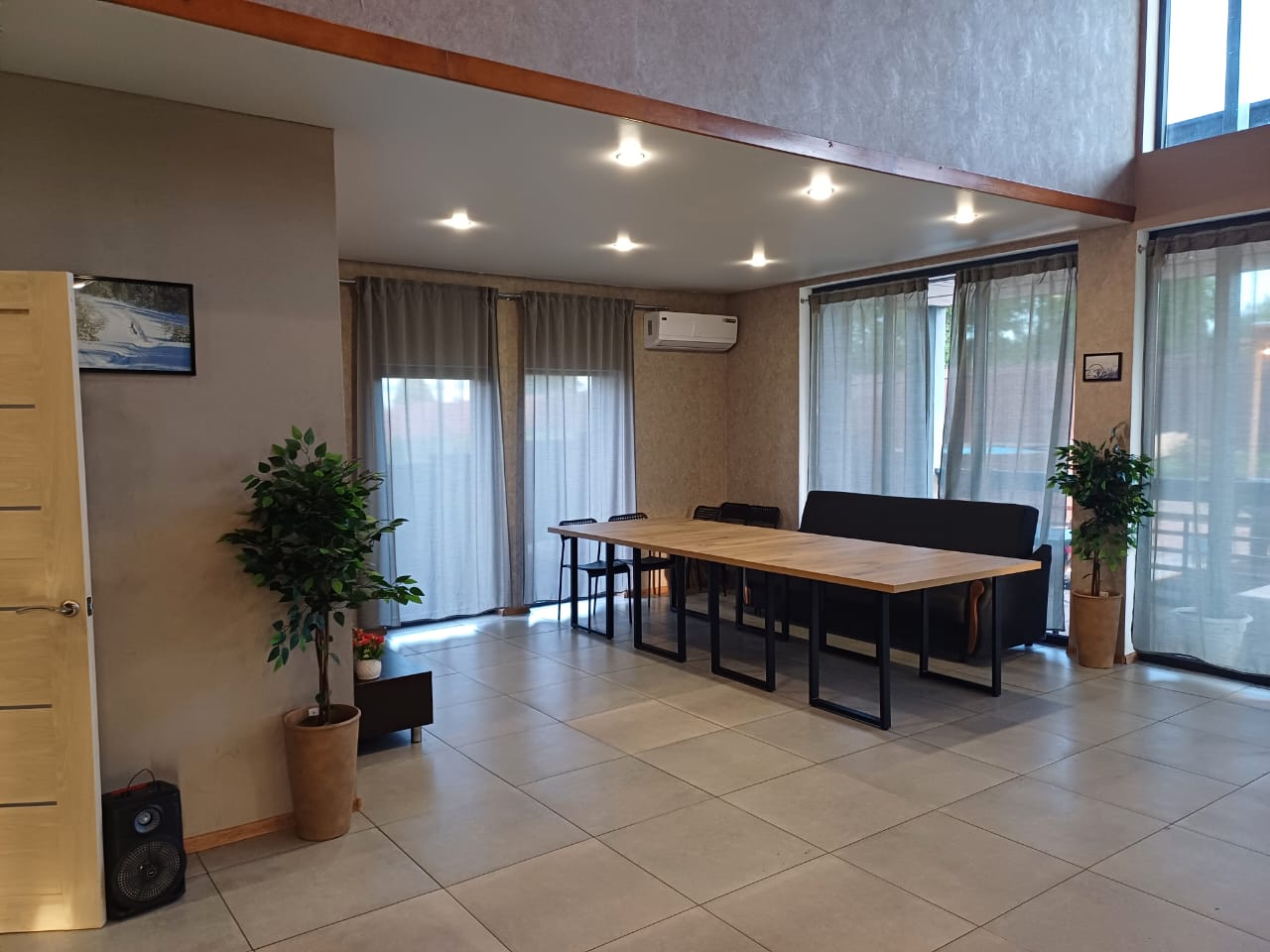 Просторный светлый дом на 25 спальных мест.Уникальный проект к панорамными окнами в скандинавском стиле,5 спален ,сауна,2 санузла и огромная гостиная 70 кв.м!Тёплые полы,ванна,душевая,детская кроватка, постельное белье, посуда,караоке,интернет,вся необходимая бытовая техника,огромный балкон и терраса,мангал,решётка и шампуры,большая бесплатная парковка.
