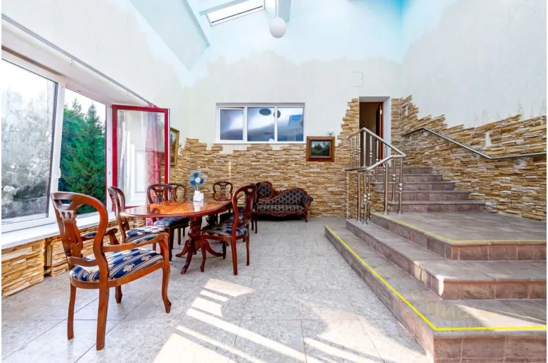 Предлагаем в аренду трехэтажный коттедж с банным и спортивным комплексом в СНТ Дони , 18 км от КАД по Киевскому шоссе. Дом подойдет для отдыха большой семьи или компании друзей. Коттедж площадью 500 кв.м. расположен на огороженном участке в 60 соток! Вокруг дома парк с дорожками, скамейками и прудом, есть площадки для парковки 8 а/м , оборудована зона барбекю для приготовления шашлыка с мангалом. От шоссе до коттеджа асфальтированный подъезд. Внутри дома: четыре спальни с двуспальными кроватями, мебелью, (каждая спальня устроена, как отдельный номер, имеет санузел, душевую кабину или ванну), банкетный зал с барной стойкой для проведения праздников, возможно размещение на ночь до 20 гостей, 2 дровяных камина, тёплый бассейн 7х4 метра, глубиной 2 метра, с постоянной системой фильтрации и обеззараживания, оснащённый гейзером, водопадом , установкой противотока для плавания и массажа, трамплин для прыжков в воду с высоты, (стоимость пользования бассейном включёна в стоимость аренды дома), пляжная зона для инфракрасного прогрева около бассейна, спортзал для активного отдыха с различными тренажёрами, боксёрским манекеном, грушей, помещение солярия и серагем-массажа, 2 сауны с банными помещениями на 1 и 3 этажах коттеджа . Общее количество комнат в коттедже -16 Для комфортного проживания в доме есть все необходимое: постельное белье, посуда, электроплиты, микроволновки, посудомойка, стиральная машина, телевизоры, Wi-Fi, муз. центр, акустическая система с караоке, и всевозможные мелочи, которые могут понадобиться во время проживания. Доступен универсам - 1,5 км До горнолыжного курорта "Туутари парк" 20 минут на машине. Вывоз мусора оплачивается отдельно - 2 000 рублей