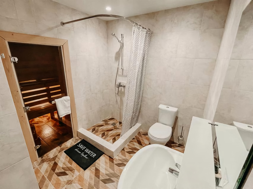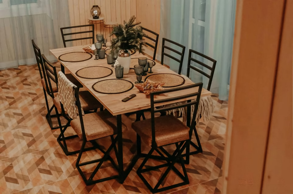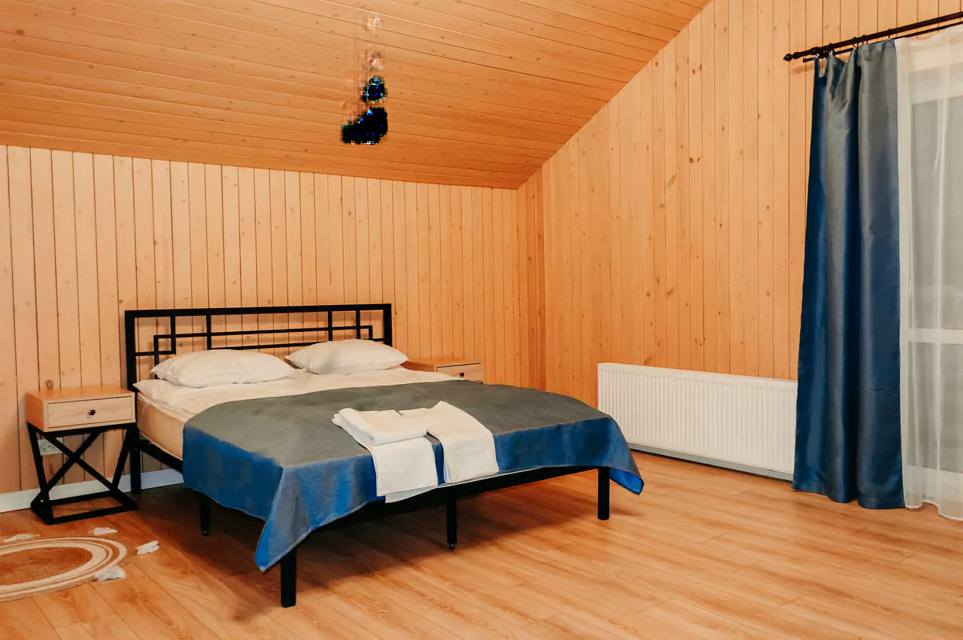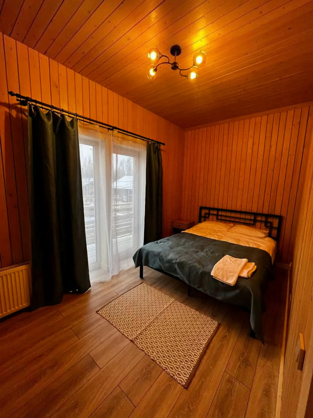 Открытая терраса и балкон в каждом коттедже • Вся необходимая техника включая посудомойку • Три просторные спальни вместимостью 6 человек • Большая кухня-гостиная с раскладывающимся диваном на 2 человека (при необходимости предоставим постельное белье и полотенце) • Ортопедические матрасы • Теплые полы • Возможность проживания с животными(по предварительной договоренности)Так же, нашим дорогим гостям доступны: