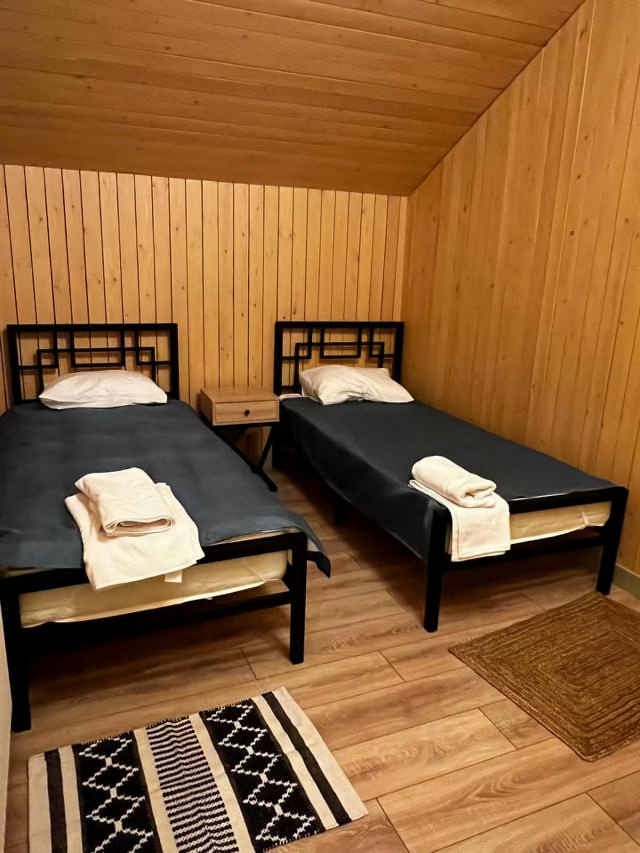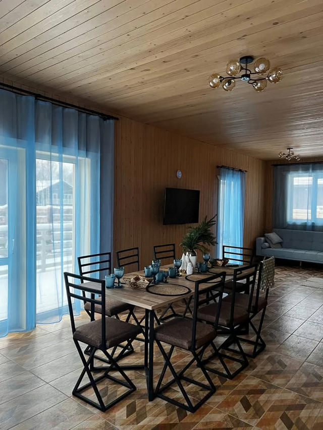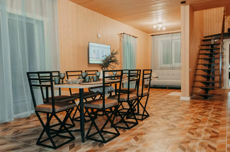 К Вашему вниманию мы предлагаем 14 просторных коттеджей премиум класса вместимостью до 8 человек В стоимость аренды входит размещение 6 человек, дополнительно можно разместить еще 2 гостя.Каждый коттедж оснащен всем необходимым для приятного времяпрепровождения: • Собственная полностью закрытая территория у каждого коттеджа • Сауна • Зона барбекю с мангалом • Wi-Fi и TV • Парковка для гостей 24 часа •