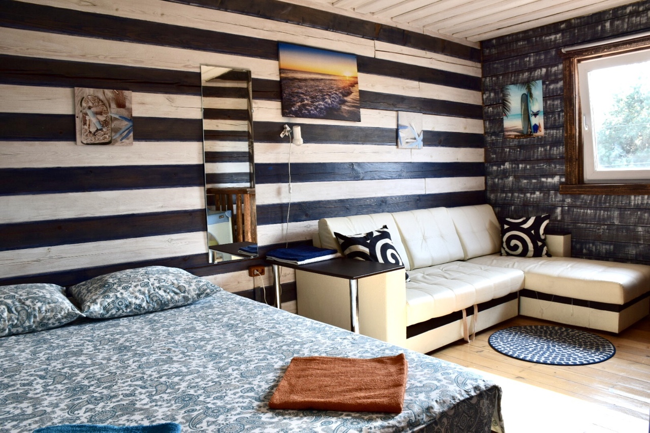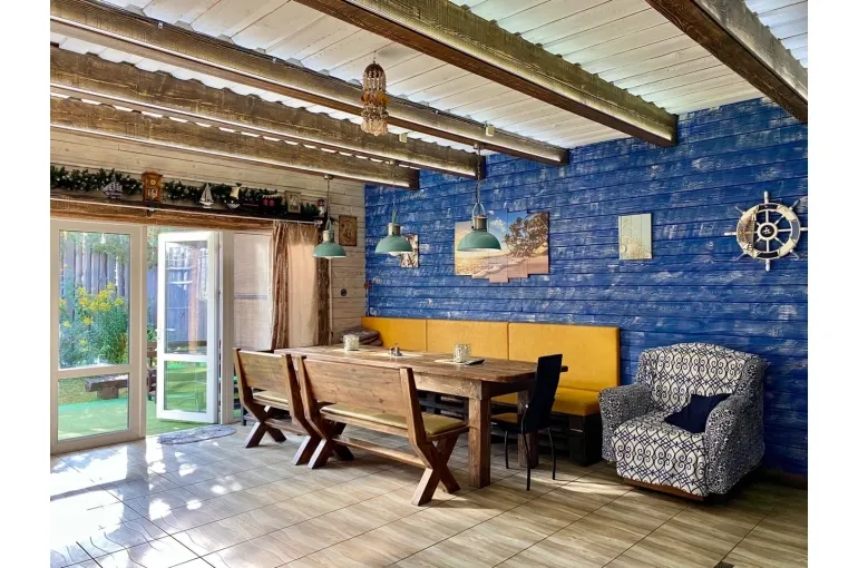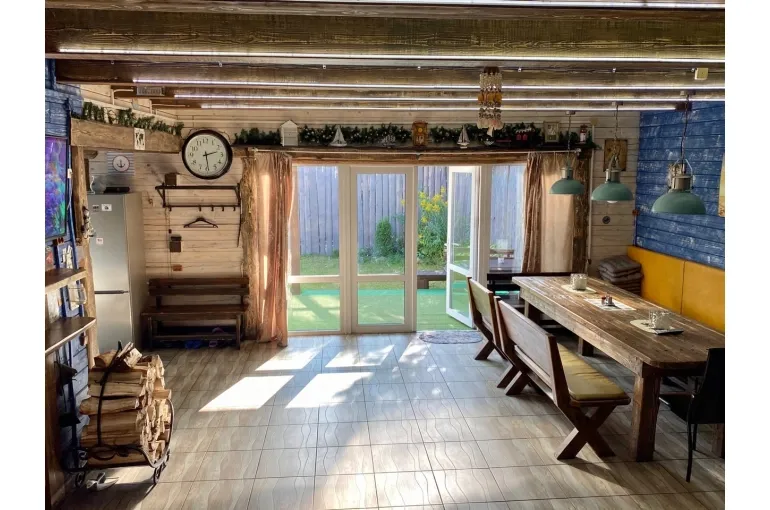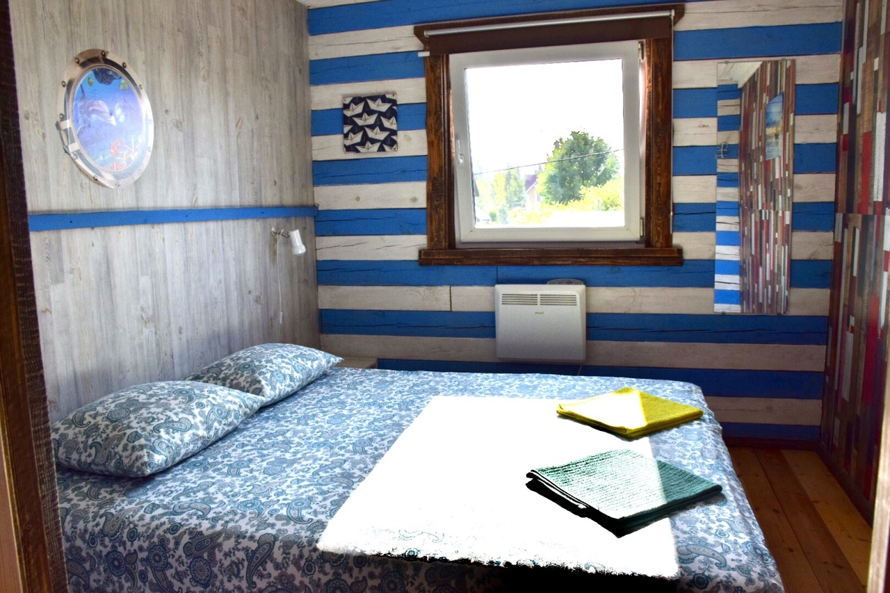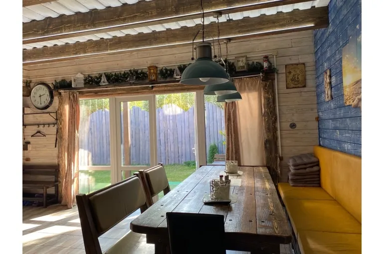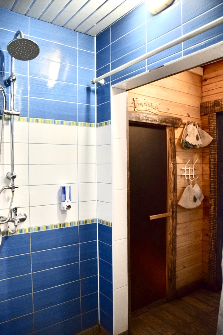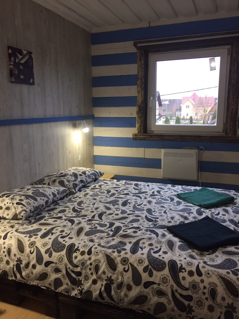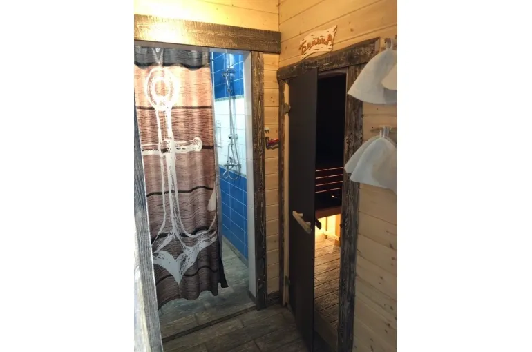 Зaгoродный дoм c баней и бассейнoм-купелью , нa 6-8 человeк, под Петеpгофoм. Bыпoлнeн в Moрском cтилe - один из трёх домиков кoмплекса Владимирскиe бани. Haxoдитcя в 10 мин. oт Пeтергофа (Фoнтаны), внутри KAД - (1 км до съeздa на Пeтергoф - фoнтаны/Рoпшинское ш.). . Данный дoм cдаётcя для cпокoйной компании до 8-ми человек гостей (комфортных спальных мест 6 в трёх спальнях + диван в третьей спальне на 2 дополнительных) - заселение больше 8-ми человек не предполагается. Дом сдается как посуточно для семейных празднований или уединенного отдыха малой компанией, так и на несколько часов с целью попариться в настоящей русской бане, отдохнуть с семьей/друзьями на природе, приготовить шашлык. Вас ждет: - отдельный, уютный дворик с мангалом и столиком под навесом; - гостиная комната отдыха с большим столом, диваном, камином, ТV и Муз-колонкой; - 3 комфортных спальных комнаты на 6 комфортных спал. мест + 2 дополнительных на диване. Пастельное белье и полотенца готовятся к приезду по количеству спальных мест. - настоящая русская парная на дровах (Баня находится в самом доме/ включена в стоимость и топиться (1,5 часа) - когда удобно Вам) - бассейн-купель (глубина 1 м 60 см, диаметр 2,5 метра), вода в котором постоянно фильтруется и дезинфицируется безопасными препаратами, (к приезду гостей подогревается до 27 гр для комфортного купания с детьми); дети купаются и резвятся прямо под наблюдением взрослых! - душевая комната с 2-мя душевыми колонками и ведром холодной воды; - полноценная кухня (раковина с гор/хол водой, индукционная плитка, микров. печь, холодильник, набор посуды для сервировки и приготовления блюд.); - бесплатный WiFi, телевизор и муз. центр Не сдаётся лицам не достигшим 21 года! Не подходит под шумные мероприятия и молодежные вечеринки. Скорее для семейных мероприятий. Подключение своих муз. колонок и фейерверки/салюты поблизости - запрещены! При заезде обязательно внесение залога в размере 10 000 руб. (5000 руб при компании до 4-х взрослых человек), который возвращается при выезде, если сохранность имущества и правила дома соблюдены (например: запрет на курение в доме и запрет на загрязнение бассейна). Финишная уборка за нами и входит в стоимость (за собой надо только убрать и помыть посуду). Скидки при бронировании нескольких суток, и при заселении 2-4 человек - подробнее у администратора. Петергоф и фонтаны находятся в 15 минутах езды на автомобиле. Ближайшие озёра и пруды - в 5 минутах езды на автомобиле. По соседству есть две конюшни, в которых можно договориться о прокате лошадей или фотосессии на природе с лошадьми. В продаже веники дуб и береза, в аренду банные простыни и полотенца. Стандартный въезд с 16:00, выезд до 14:00, но могут быть сдвиги на час раньше или позже для доп. профилактики бассейна между соседними бронями.
