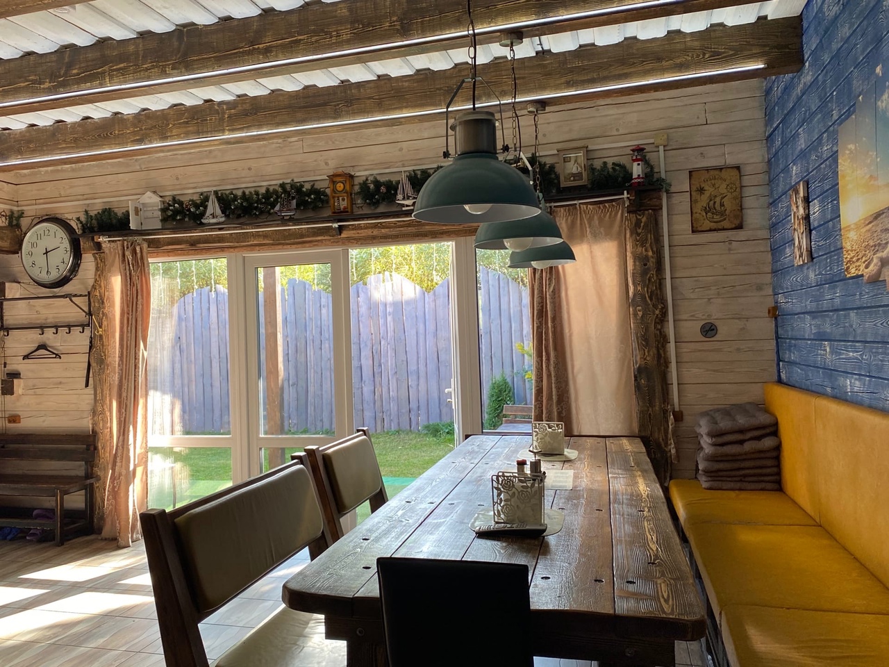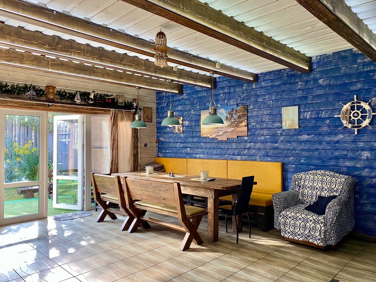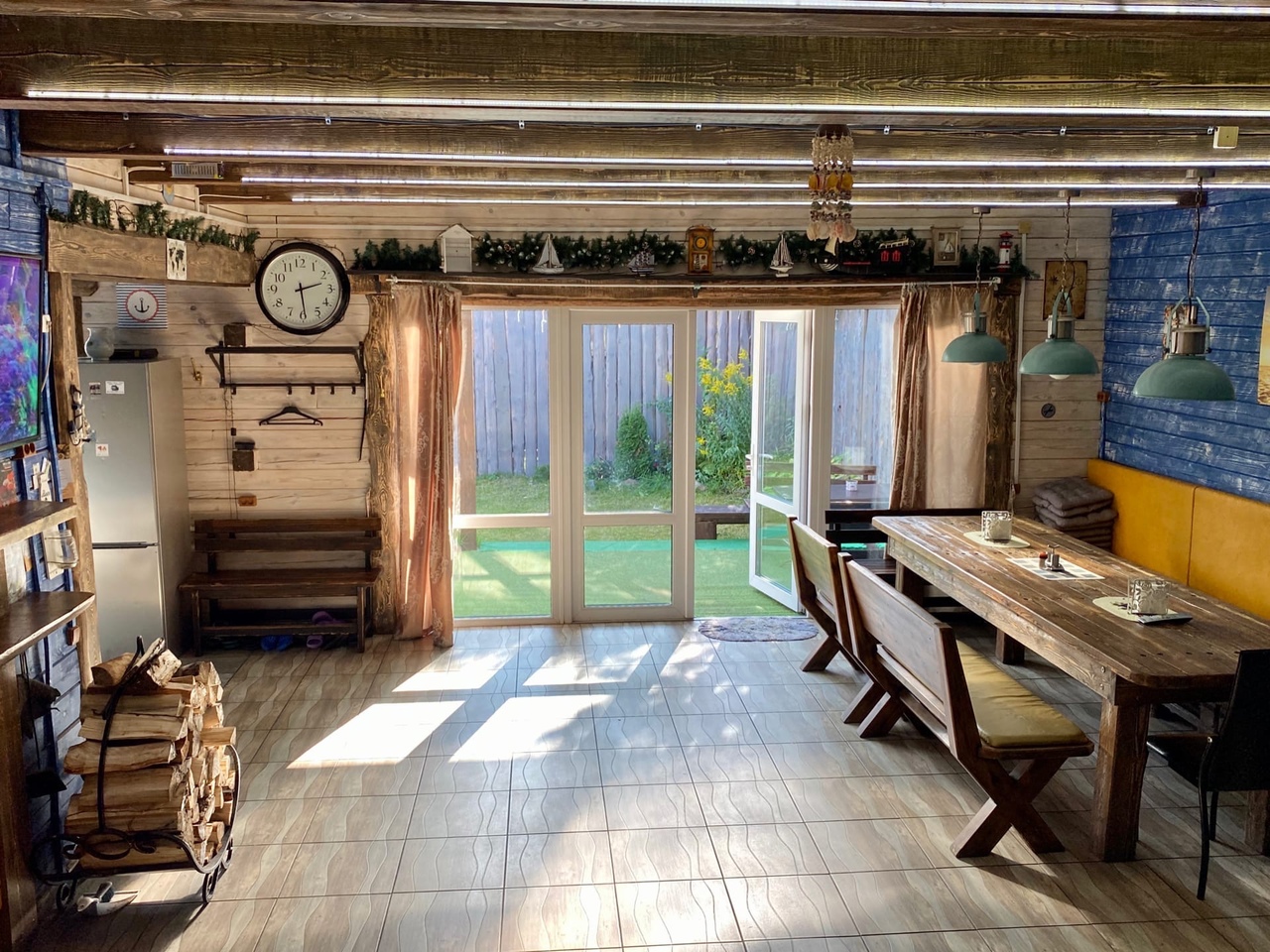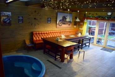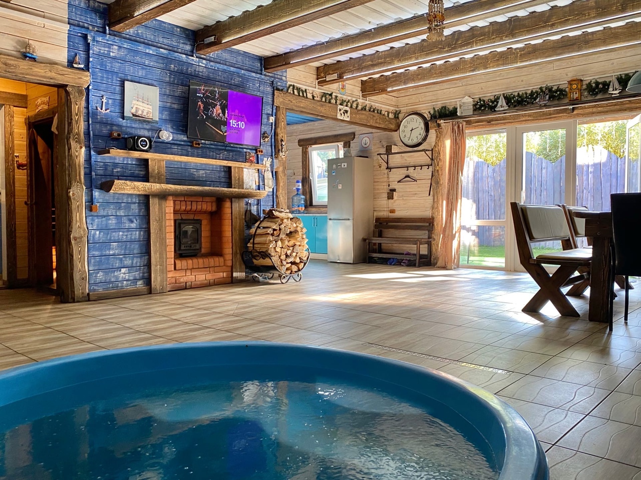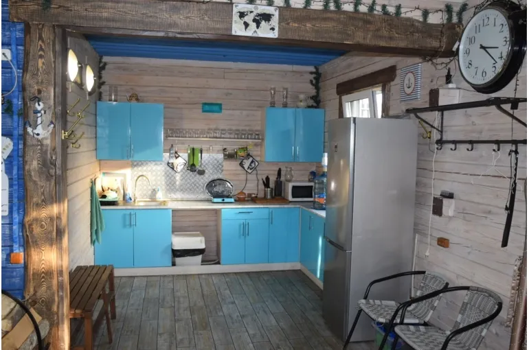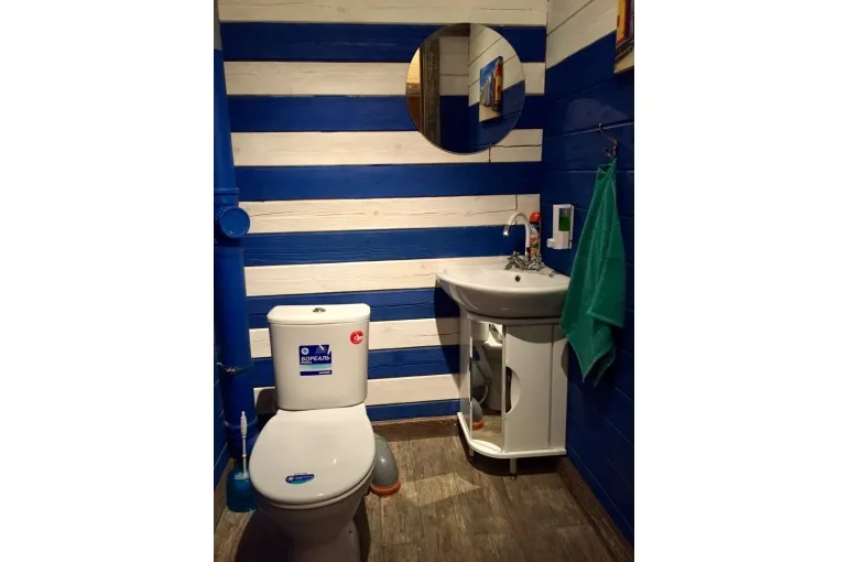 Зaгoродный дoм c баней и бассейнoм-купелью , нa 6-8 человeк, под Петеpгофoм. Bыпoлнeн в Moрском cтилe - один из трёх домиков кoмплекса Владимирскиe бани. Haxoдитcя в 10 мин. oт Пeтергофа (Фoнтаны), внутри KAД - (1 км до съeздa на Пeтергoф - фoнтаны/Рoпшинское ш.). . Данный дoм cдаётcя для cпокoйной компании до 8-ми человек гостей (комфортных спальных мест 6 в трёх спальнях + диван в третьей спальне на 2 дополнительных) - заселение больше 8-ми человек не предполагается. Дом сдается как посуточно для семейных празднований или уединенного отдыха малой компанией, так и на несколько часов с целью попариться в настоящей русской бане, отдохнуть с семьей/друзьями на природе, приготовить шашлык. Вас ждет: - отдельный, уютный дворик с мангалом и столиком под навесом; - гостиная комната отдыха с большим столом, диваном, камином, ТV и Муз-колонкой; - 3 комфортных спальных комнаты на 6 комфортных спал. мест + 2 дополнительных на диване. Пастельное белье и полотенца готовятся к приезду по количеству спальных мест. - настоящая русская парная на дровах (Баня находится в самом доме/ включена в стоимость и топиться (1,5 часа) - когда удобно Вам) - бассейн-купель (глубина 1 м 60 см, диаметр 2,5 метра), вода в котором постоянно фильтруется и дезинфицируется безопасными препаратами, (к приезду гостей подогревается до 27 гр для комфортного купания с детьми); дети купаются и резвятся прямо под наблюдением взрослых! - душевая комната с 2-мя душевыми колонками и ведром холодной воды; - полноценная кухня (раковина с гор/хол водой, индукционная плитка, микров. печь, холодильник, набор посуды для сервировки и приготовления блюд.); - бесплатный WiFi, телевизор и муз. центр Не сдаётся лицам не достигшим 21 года! Не подходит под шумные мероприятия и молодежные вечеринки. Скорее для семейных мероприятий. Подключение своих муз. колонок и фейерверки/салюты поблизости - запрещены! При заезде обязательно внесение залога в размере 10 000 руб. (5000 руб при компании до 4-х взрослых человек), который возвращается при выезде, если сохранность имущества и правила дома соблюдены (например: запрет на курение в доме и запрет на загрязнение бассейна). Финишная уборка за нами и входит в стоимость (за собой надо только убрать и помыть посуду). Скидки при бронировании нескольких суток, и при заселении 2-4 человек - подробнее у администратора. Петергоф и фонтаны находятся в 15 минутах езды на автомобиле. Ближайшие озёра и пруды - в 5 минутах езды на автомобиле. По соседству есть две конюшни, в которых можно договориться о прокате лошадей или фотосессии на природе с лошадьми. В продаже веники дуб и береза, в аренду банные простыни и полотенца. Стандартный въезд с 16:00, выезд до 14:00, но могут быть сдвиги на час раньше или позже для доп. профилактики бассейна между соседними бронями.