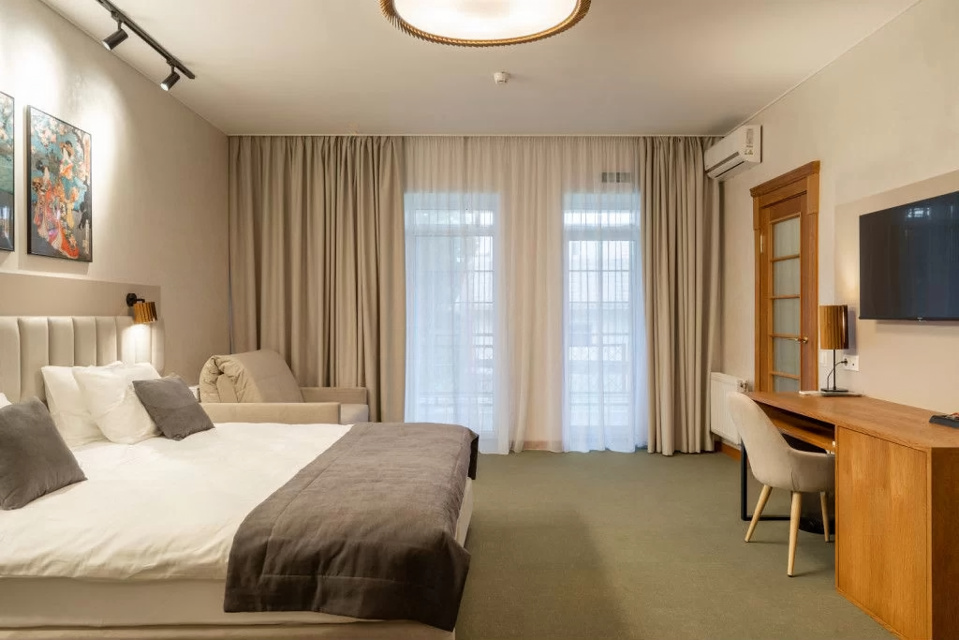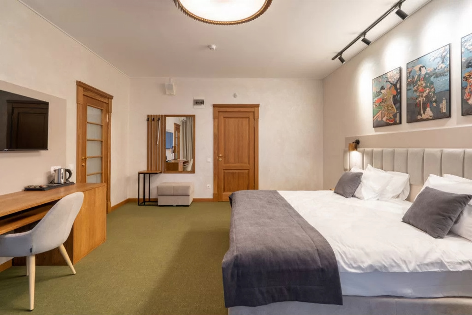 Общая информация:✅ 14 комнат✅ 34 спальных места✅ клининг входит в стоимость✅ 15 парковочных мест✅ sра-зона с караокеВозможно размещение в 14 комфортабельных номерах и пентхаусе (общей вместимостью до 37 гостей).• Постельное белье, комплект из 2-х полотенец на каждого, телевидение, wi-fi, чайная станция, небольшой холодильник, сейф, утюг и гладильная доска (по запросу).• Индивидуальный санузел в каждой комнате с душевой кабиной, есть ванные принадлежности - фен, косметические принадлежности, шампунь, кондиционер и гель для душа.• Мангальная зона для шашлыков и барбекю с принадлежностями.• Индивидуальная большая благоустроенная территория с садом.• Территория охраняется.🌫SРА - зона (36м2) (оплачивается дополнительно)• Сауна с вениками.• Душевая комната с купелью.• Вместимость до 15 персон ⁠.• Комната отдыха с ТВ зоной.• ⁠Караоке-система.• Отдельный вход, а также отдельные раздевалки ⁠.• Чайная станция.• Простыни для укрывания, шапочки, одноразовые тапочки.Просторные территории и уникальная локация создадут прекрасные условия для вашего отдыха.Условия и цены:🕒 Заселение с 16:00, выезд до 13:00.- Аренда дома на 20 гостей - от 60 000 р./сутки- Аренда дома на 35 гостей - от 7 000 р./сутки (оплачивается дополнительно