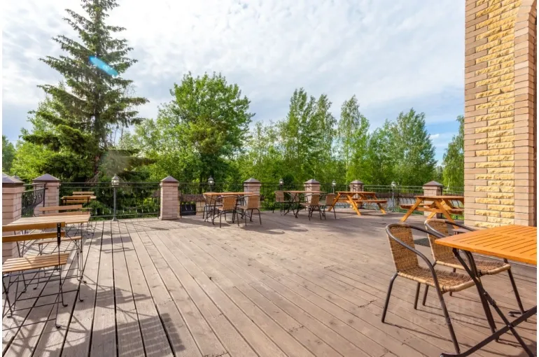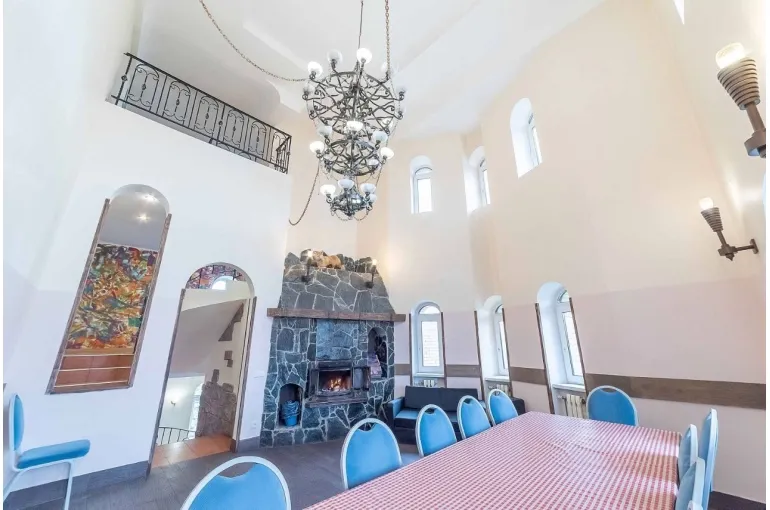 В стоимость входит сауна и бассейн на весь срок пребывания. Отдельно оплачивается постельное белье 100р/двухспальный комплект или с собой Предлагается для отдыха эксклюзивный коттедж в 5 км. от КАД. Просто огромный комплекс 650 метров только в Вашем распоряжении! Очень атмосферное место! Красивая природа. Отлично подойдет как для большой компании, так и для тихого семейного отдыха с детьми. Отдохнуть от городской суеты перед камином с бокальчиком чего-нибудь вкусного или попариться в сауне, прыгнуть в бассейн. В 20 метрах от Замка находится озеро. Идеально подойдет для празднования Вашего события, дня рождения, корпоратива или просто Вечеринки. Прекрасно подойдет провести Вашу свадьбу. Огромная территория с кремлевскими елями и трехметровым забором. По всей территории подсветка с датчиком движения. Парковка на территории на 10 машин Полноценная кухня 30 метров со всей техникой. Огромная терраса 100 метров со столиками и подсветкой по периметру. Сауна с большим бассейном и зоной отдыха. Каминный зал с большим столом. Комната отдыха с кожаными диванами и столом из массива.